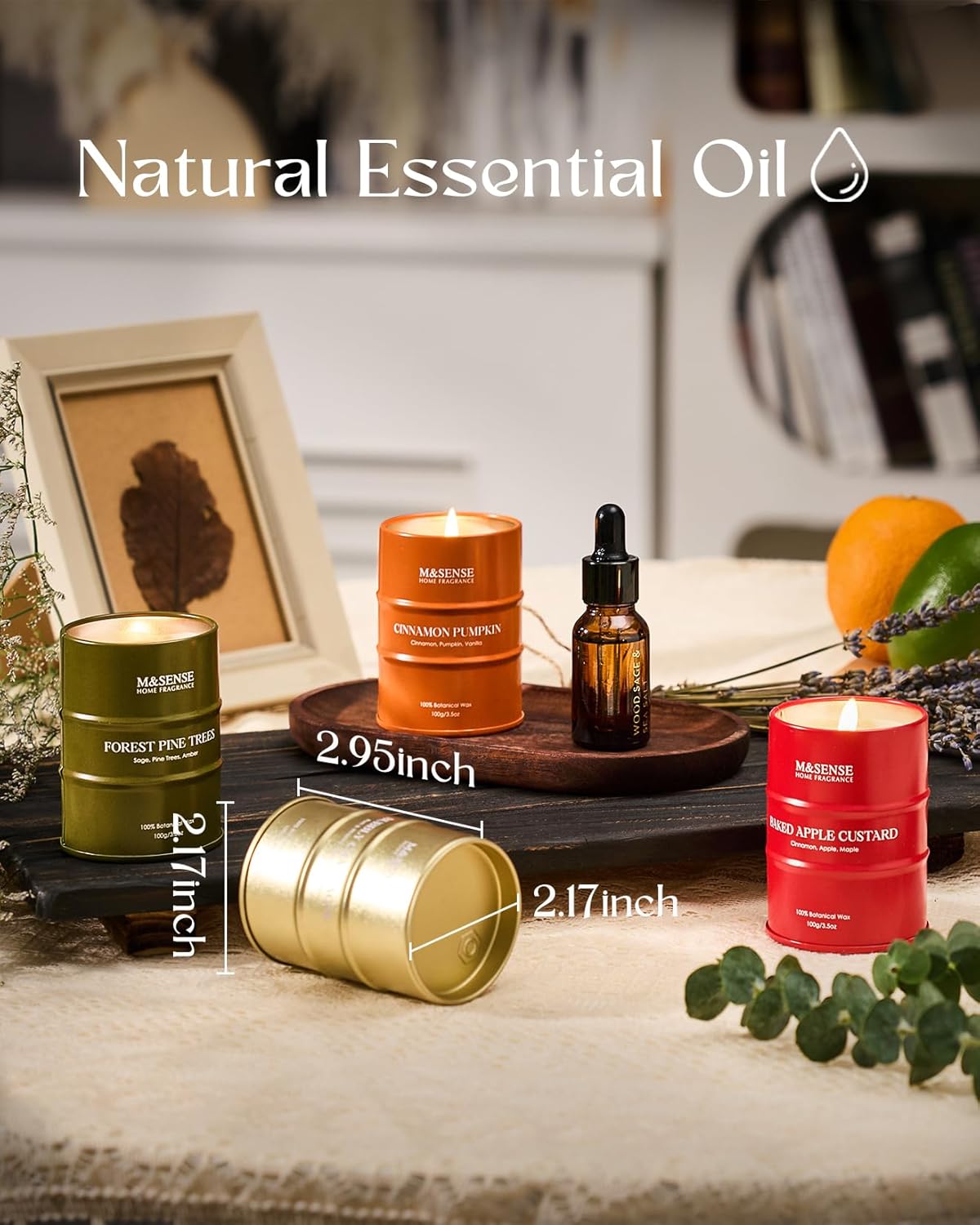 - 💚 Sustainable Material - M&SENSE candles are all crafted with the finest and most natural ingredients. Using high-end vegetable wax and unbleached cotton wicks in a reusable and recyclable tin. Packaged in recycled honeycomb paper and cardboard box for a more sustainable future.