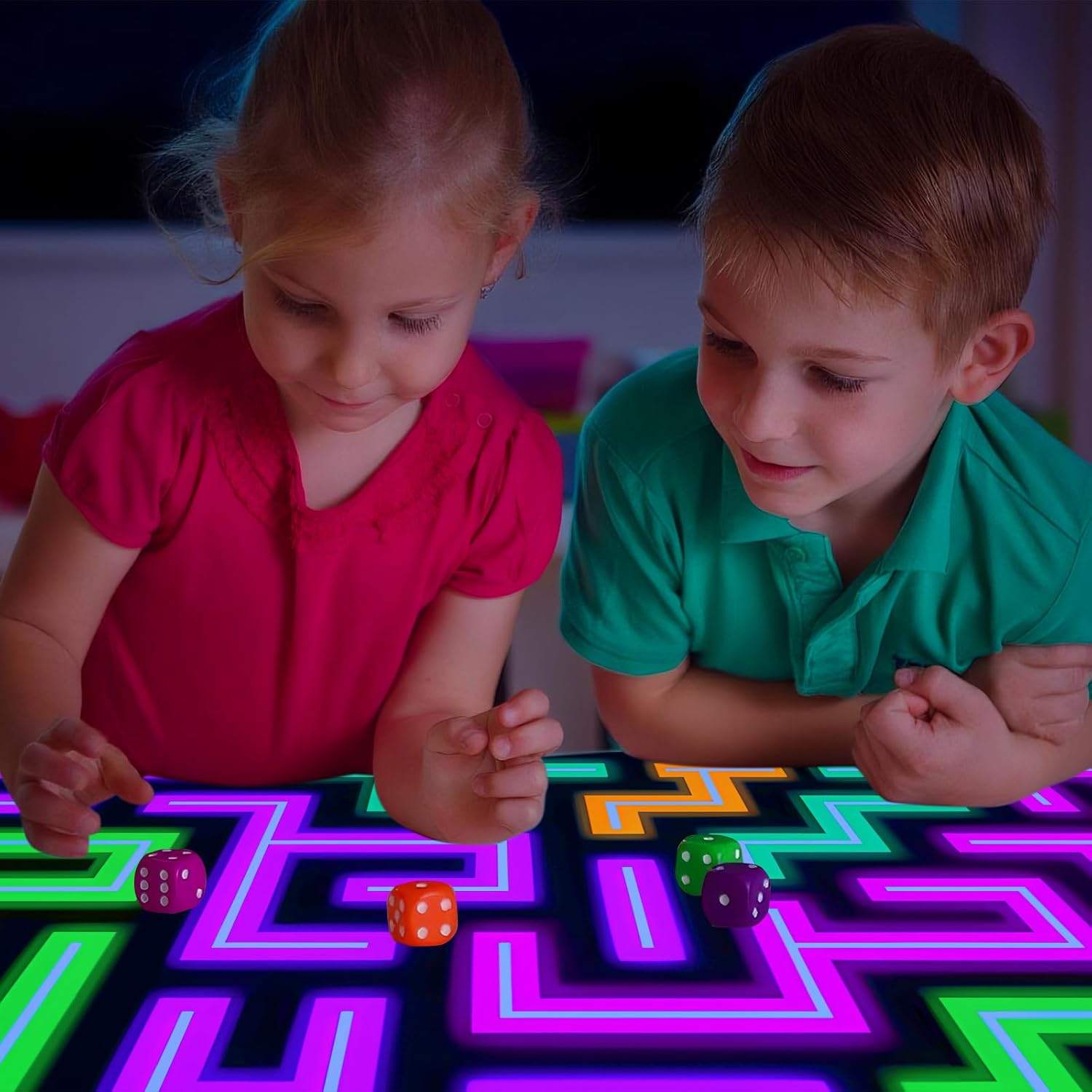 - Bright Fluorescent Color: the light up dance floor shines brightly under UV blacklight, with fluorescent orange, fluorescent pink, fluorescent green and fluorescent blue maze route staggered against each other, making it simple to draw the attention of others; Please note that it will have the effect of fluorescence, but it needs to be irradiated by purple lamp to have the effect; If it is not irradiated, it is a normal pattern