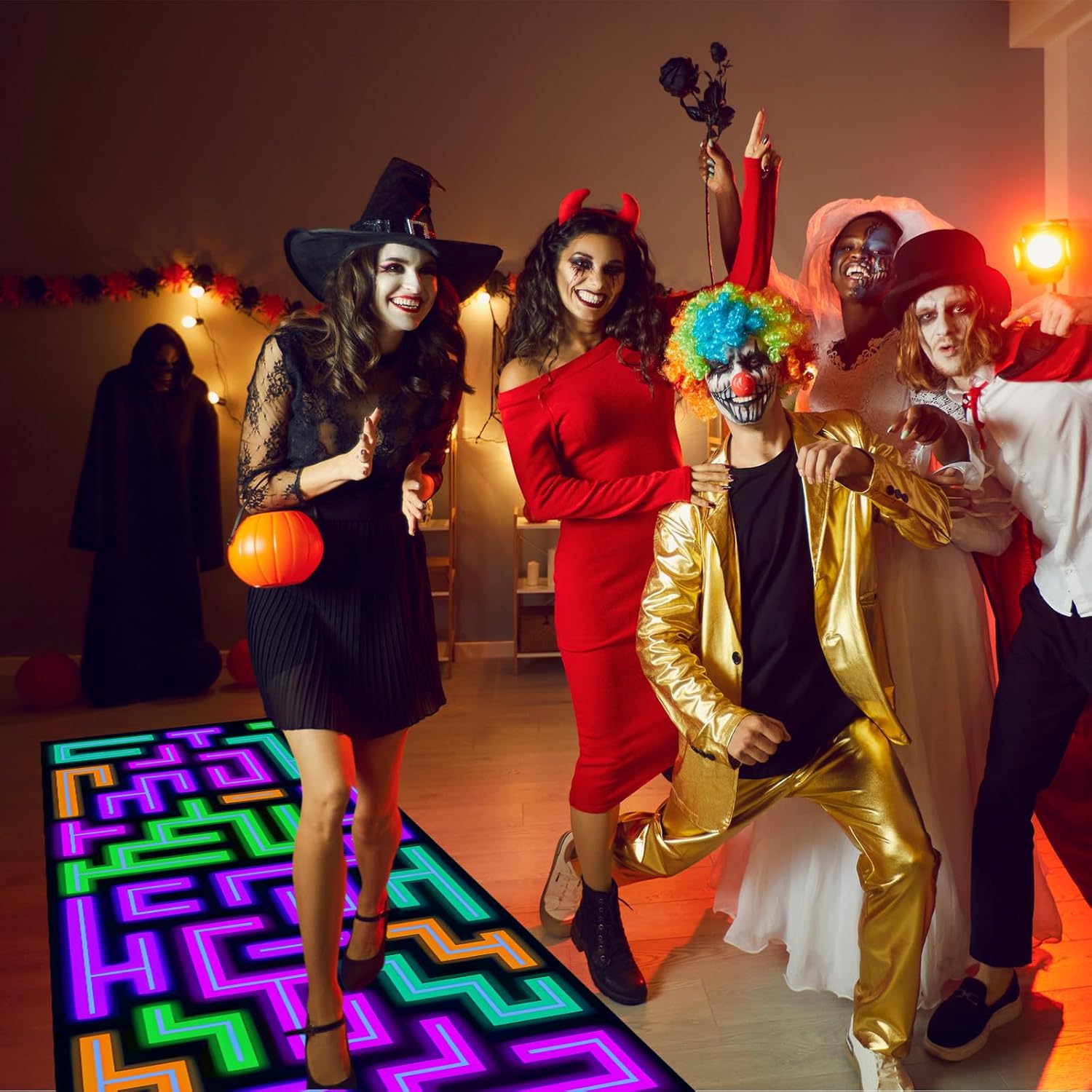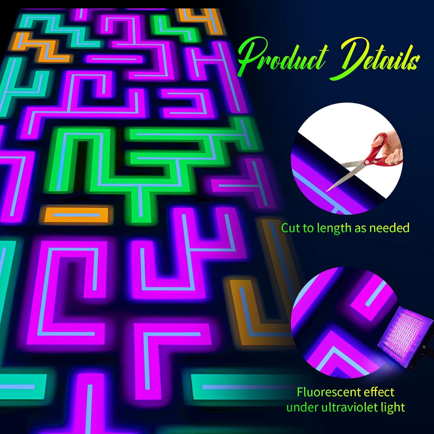 Haull 118 x 39 Inch Neon Light up Dance Floor Glow in The Dark Runner UV Reactive Blacklight Floor Aisle Runner Decor Wall Props for 80s 90s Neon Birthday Party Decorations(Labyrinth)