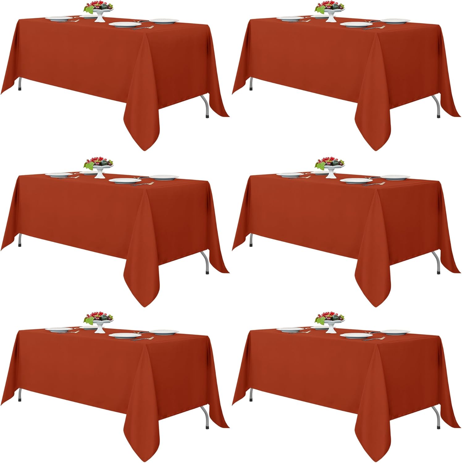 Fitable Rust Tablecloths for Rectangle Tables, 6 Pack - 70 x 120 Inches - Reusable and Washable Fall Table Clothes for 6-8 Ft Tables, Polyester Fabric Table Covers for Wedding, Party, Banquet