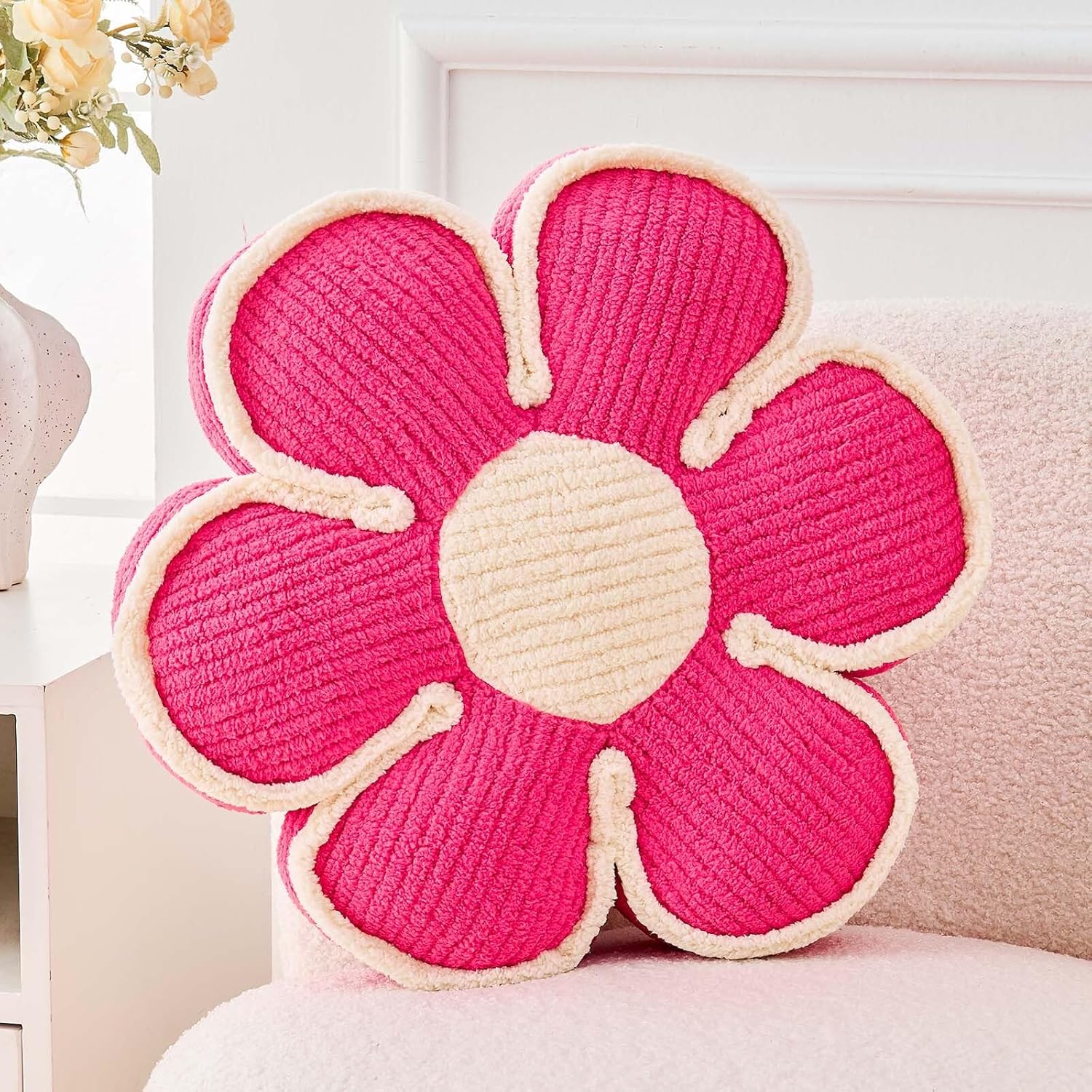 Flower Pillow, Soft Flower Decorative Throw Pillow, Cute Daisy Flower Shaped Seating Floor Cushion Room Décor Plush Pillows for Sofa Couch Bed (17.7 Inch, Hot Pink)