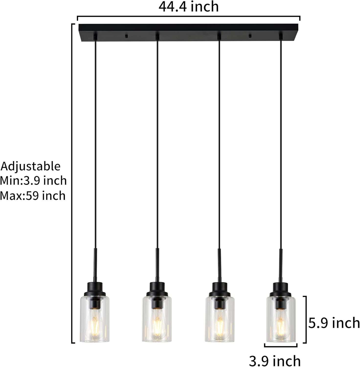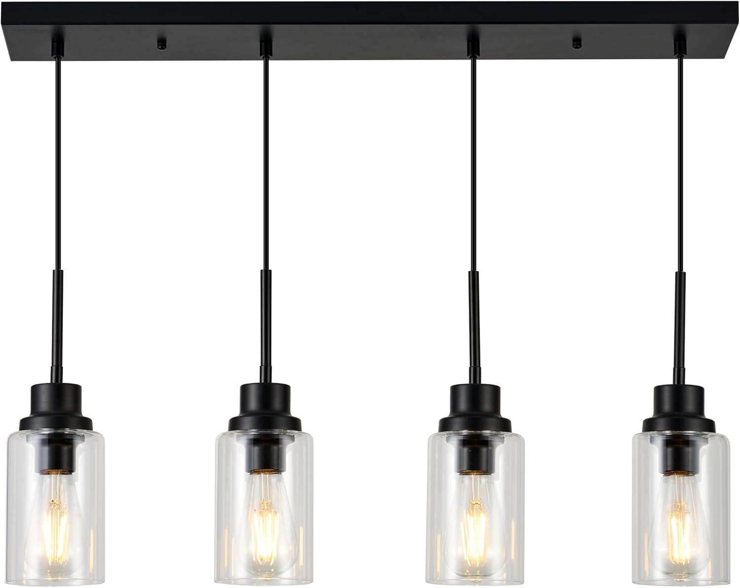 4-Lights Pendant Lighting for Kitchen Island in Black, Ceiling Light Fixtures with Adjustable Hanging Wire & Clear Glass Shades