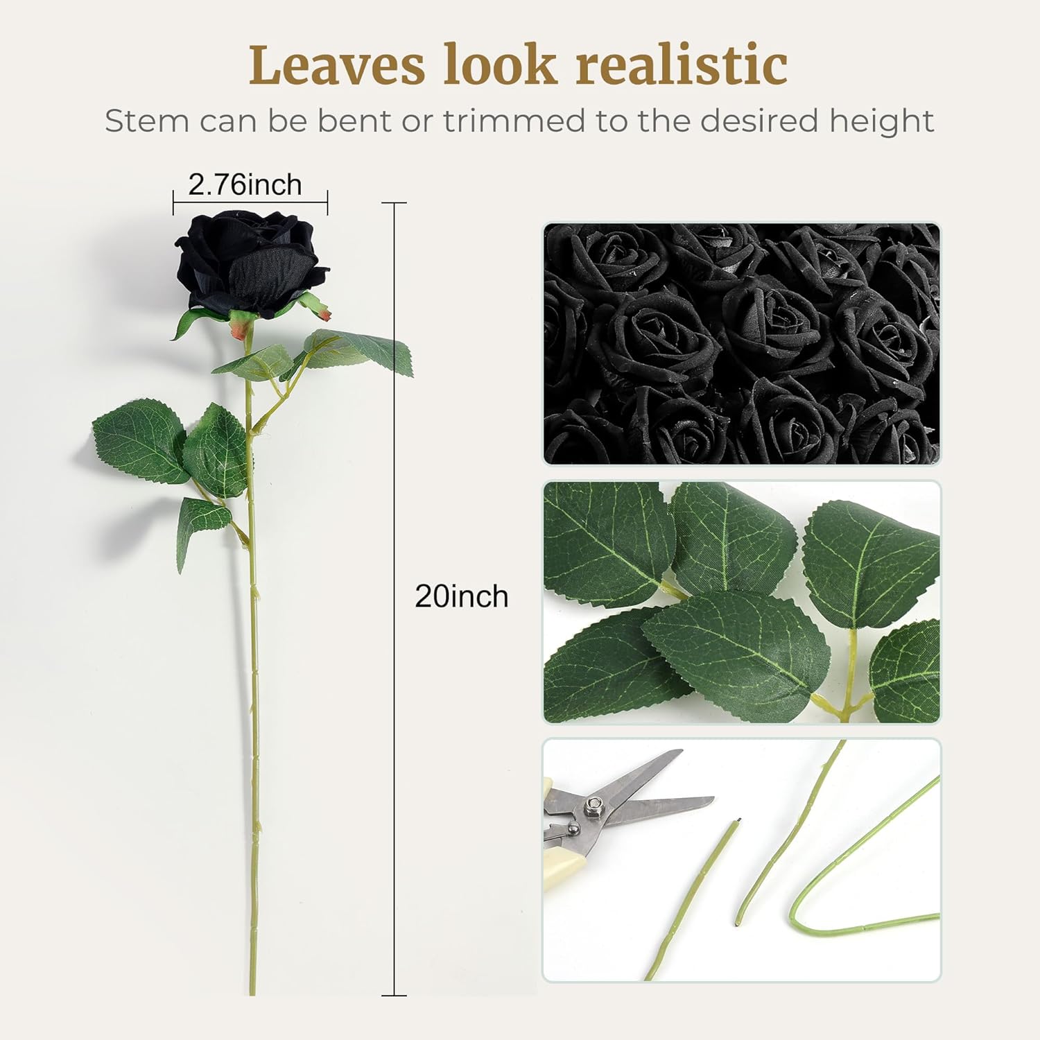 - Abundant Black Roses Set: With 60 pieces of premium velvet and silk black roses artificial flowers, this bulk set creates lavish wedding centerpieces, Halloween decorations, or dramatic table garland effortlessly. Ideal for event preparation like baby showers and Valentine's Day, it provides ample black roses bouquet for DIY centerpieces, wedding photo booth setups, or home decoration projects—ensuring you never run short for any occasion