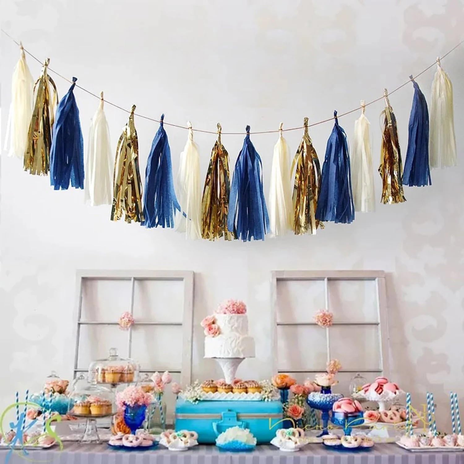 - Package includes:15Pcs tissue paper tassels(5 * navy blue,5 * blue,5 * light blue).