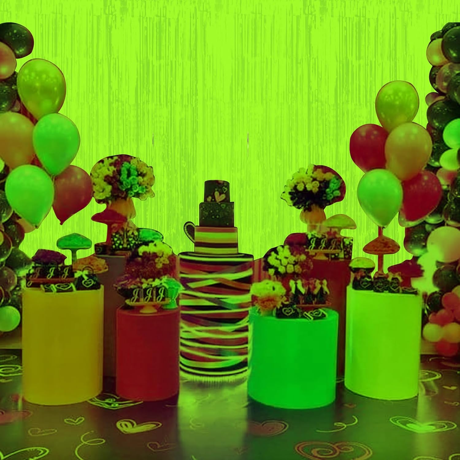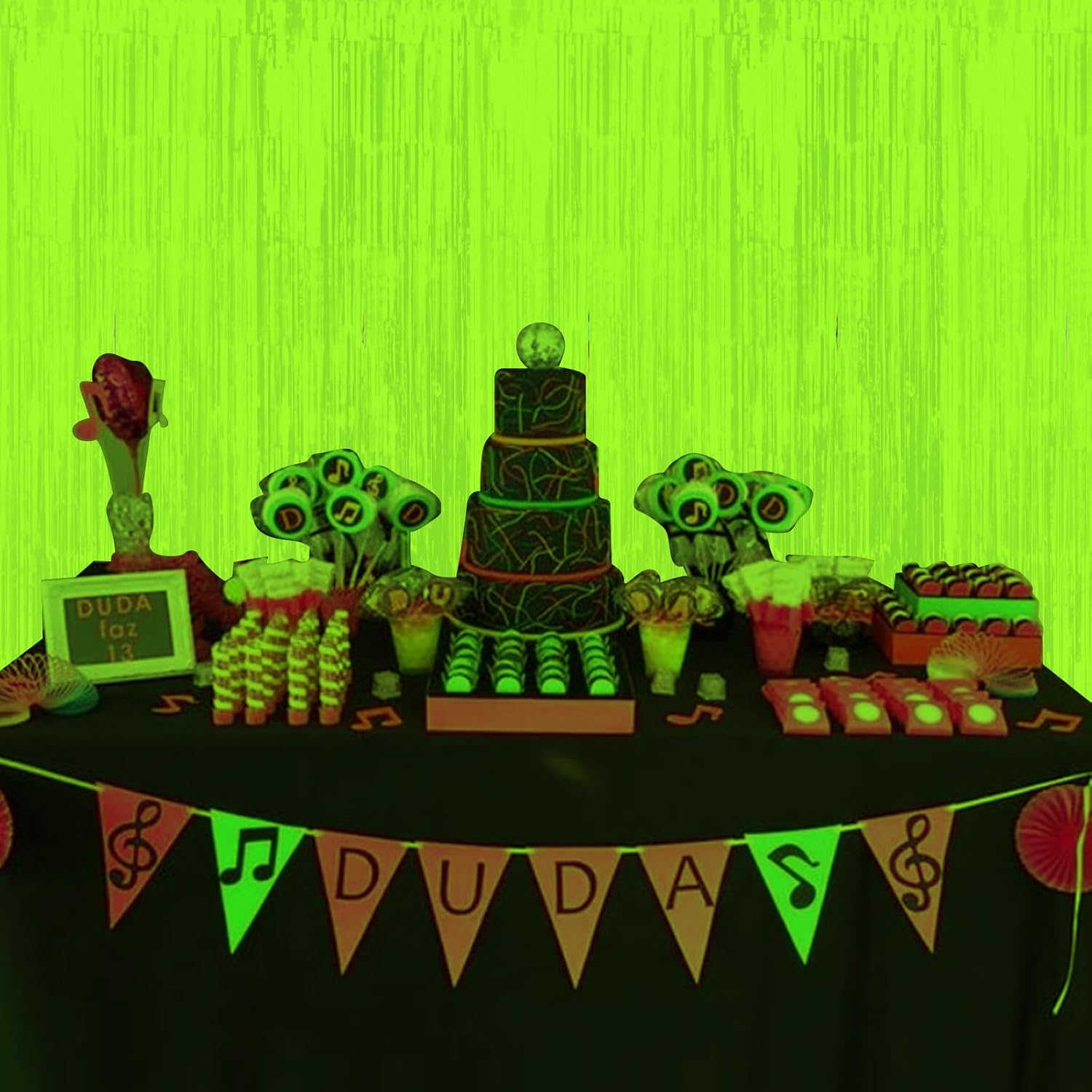 - What’s Inside: Included in the package are 3 yellow glow in the dark foil fringe curtains, each measuring 3.3 x 6.6 ft, making them suitable for decorating most scenes. Perfect for creating an impressive neon backdrop for neon birthday party decorations and glow in the dark party supplies