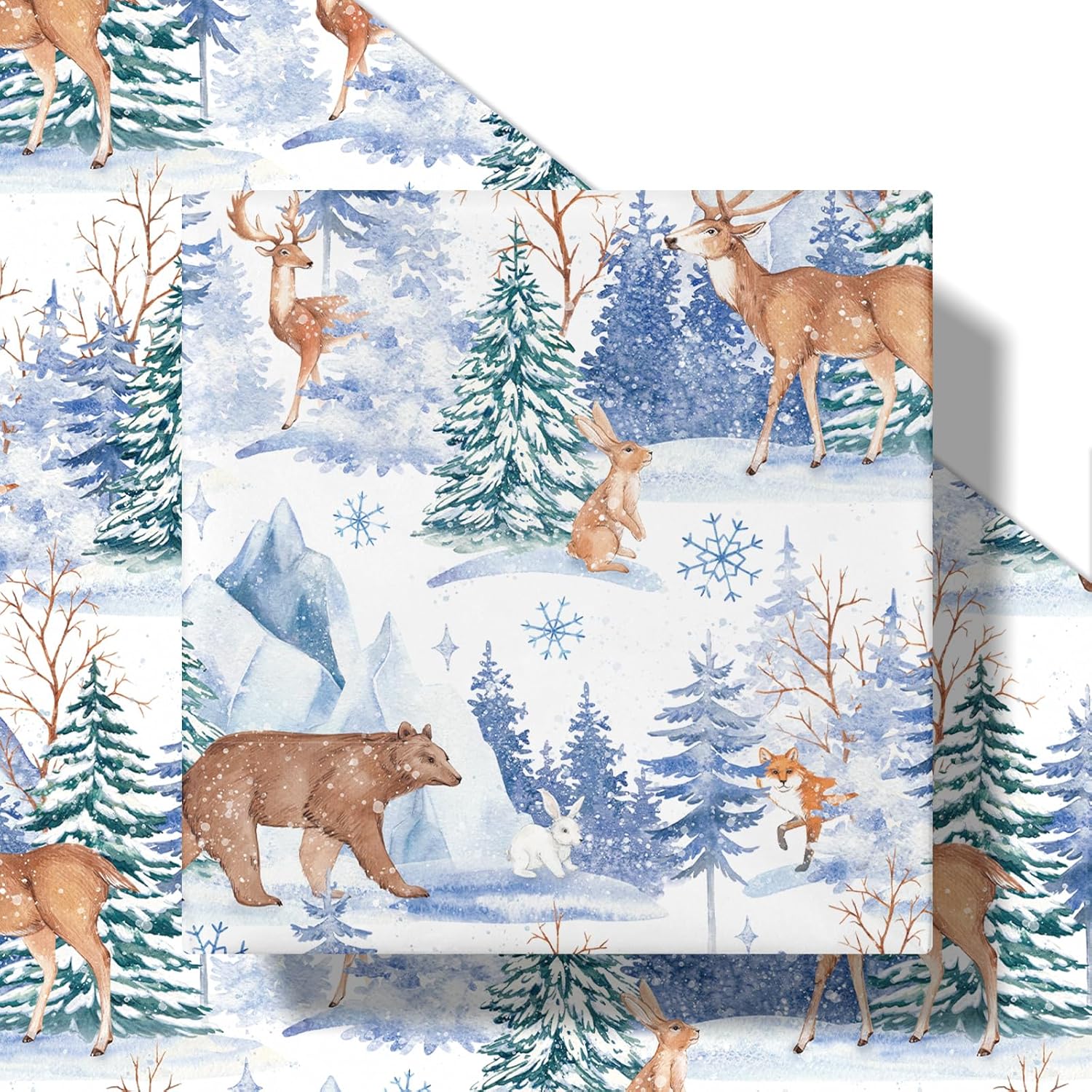 - Enchanting Winter Forest Design: Features a watercolor-style woodland scene with deer, bears, rabbits, and snow-covered trees—bringing the peaceful beauty of winter nature to your holiday gifts.