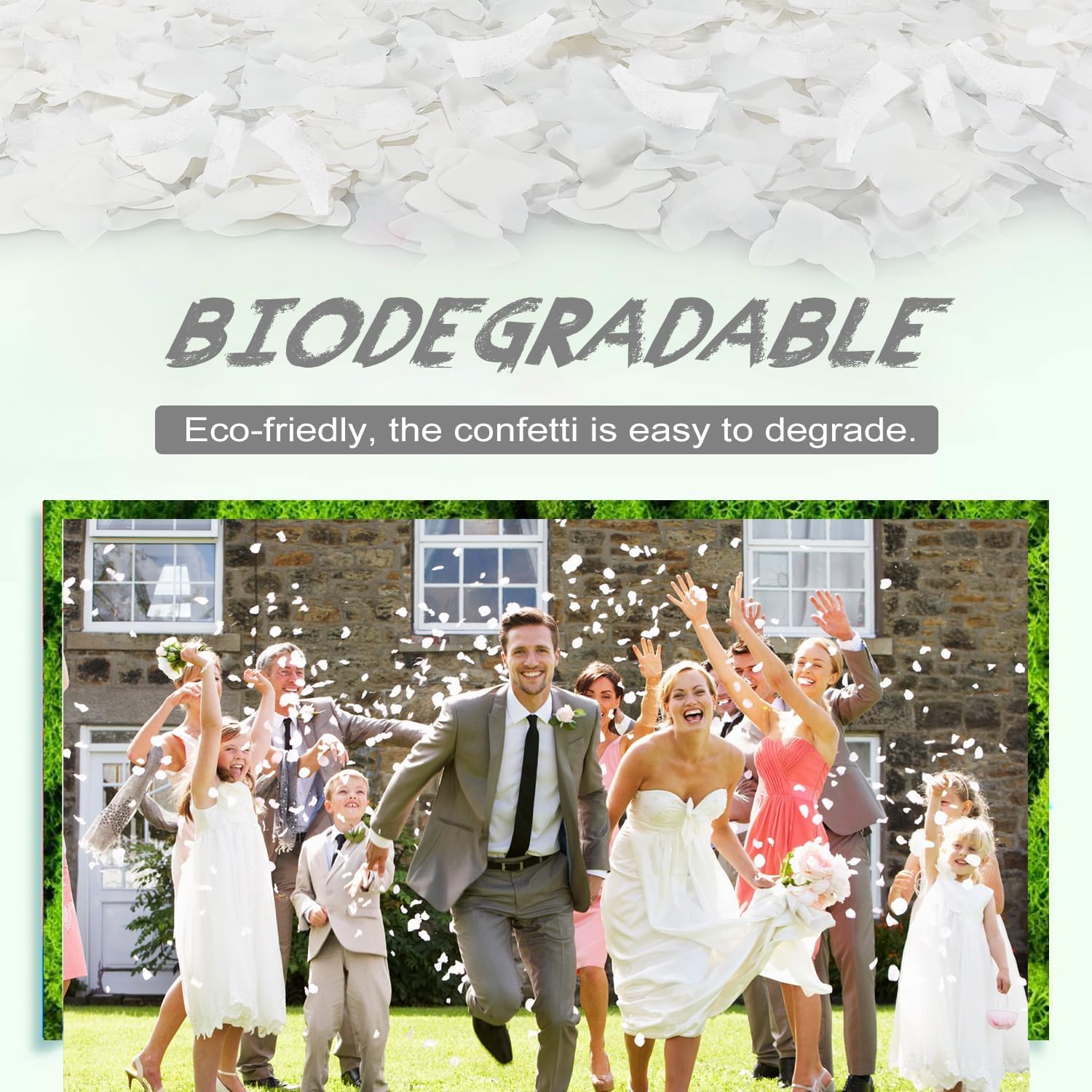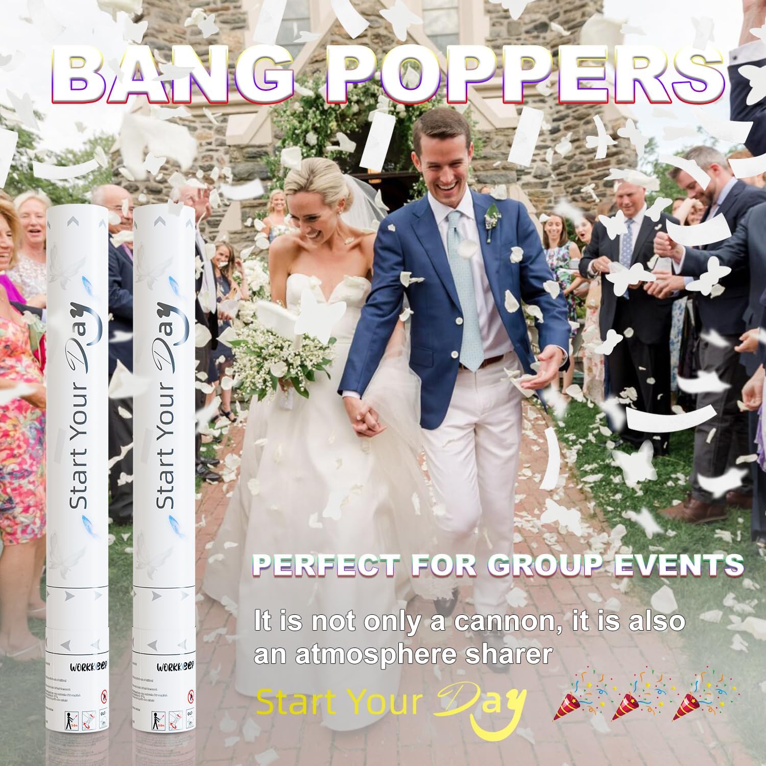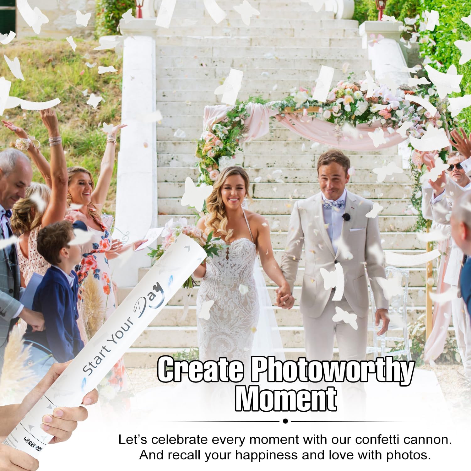 - Happy Celebration: - Each of our Confetti Cannons contains about 3 oz. More White biodegradable paper chips than any other similarly sized product on the market. You're sure to wow friends and family and capture awe-inspiring moments in the air in beautiful vibrant colors.