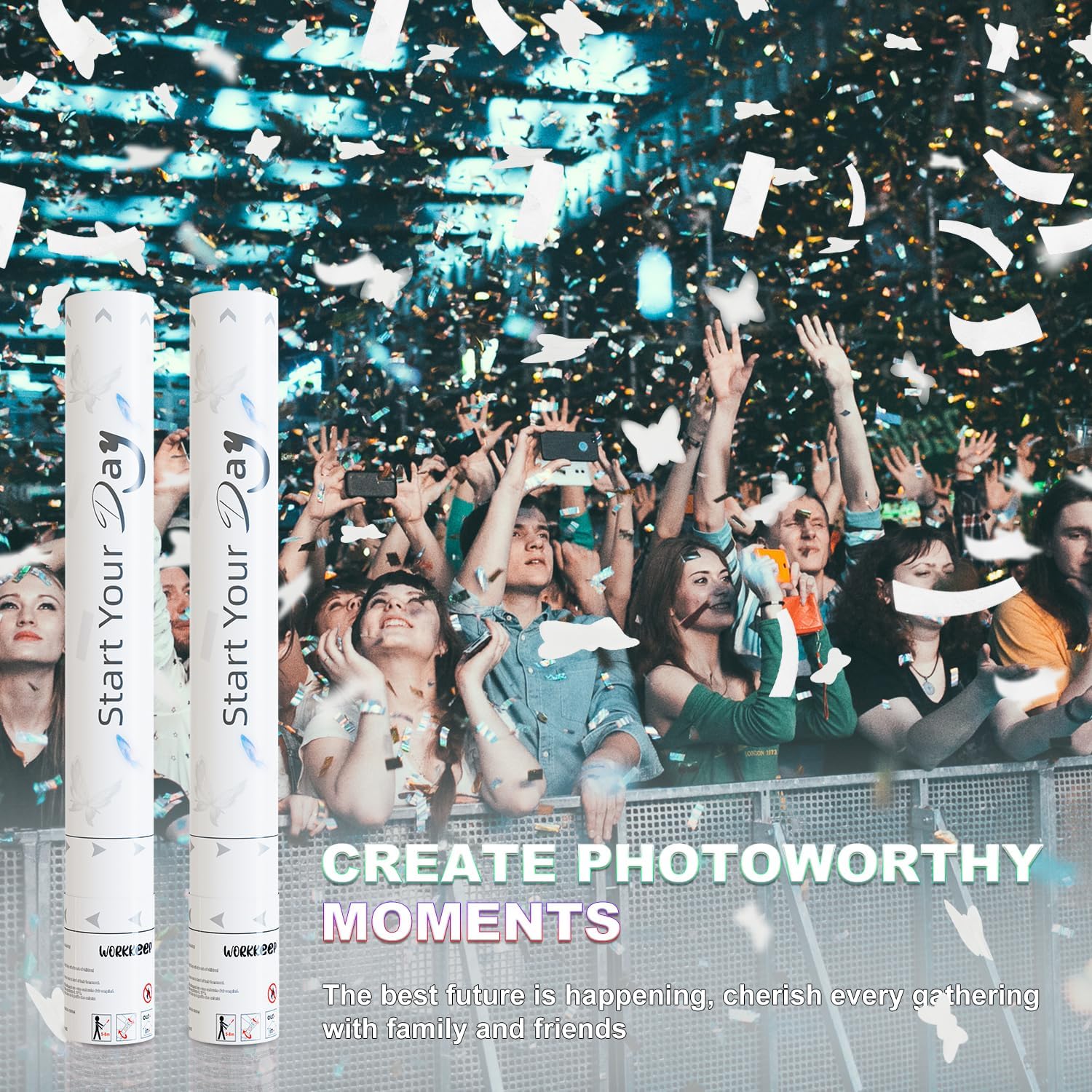 - Simple to Use: You just twist the bottom of the cannon with your hand and aim straight up, each party popper shoots confetti up to 15-20 feet in the air.