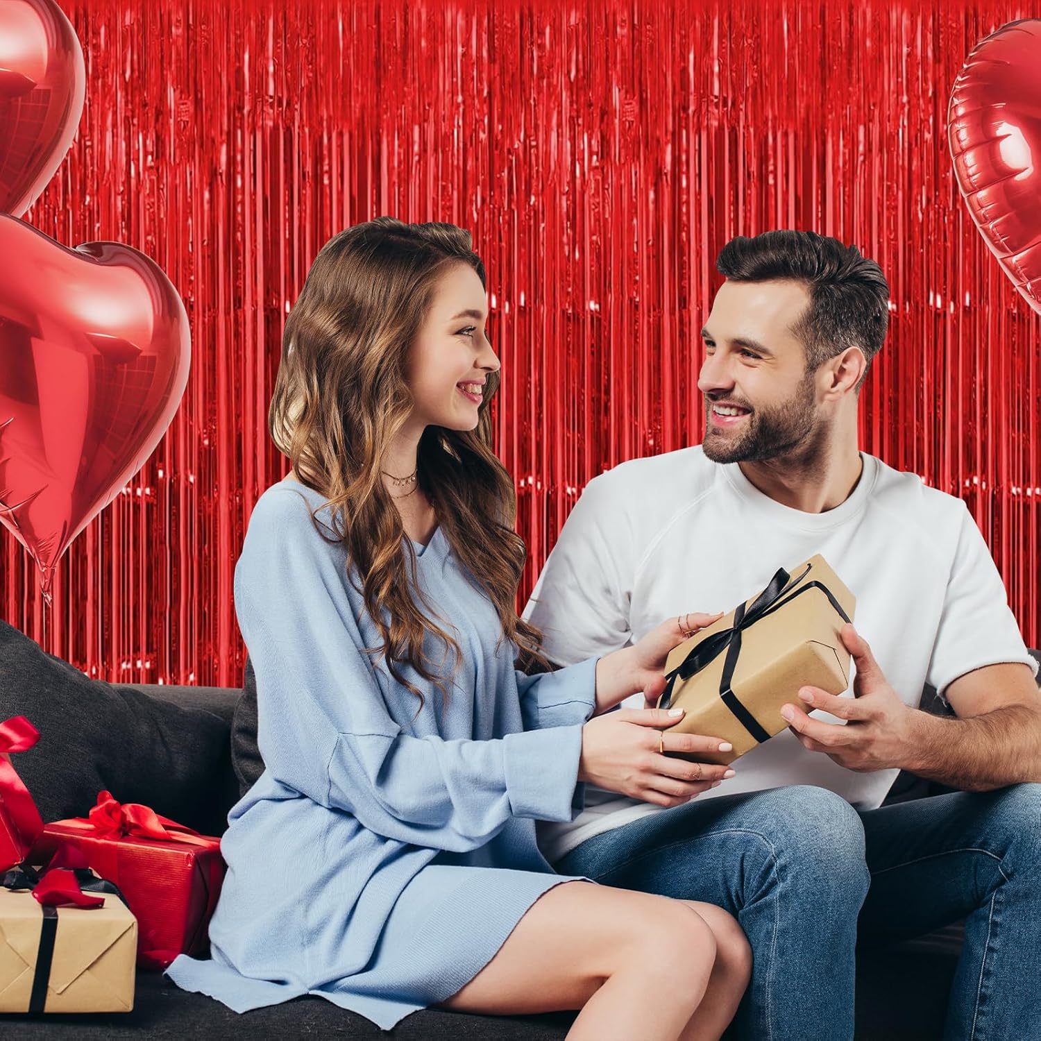 30 Pack Red Foil Fringe Curtain Backdrop, 3.3x8.2 Feet Metallic Tinsel Streamer Curtains Photo Booth Props for Wedding/Anniversary/Bridal Shower/Christmas/New Year/Valentine's Day Party Decorations