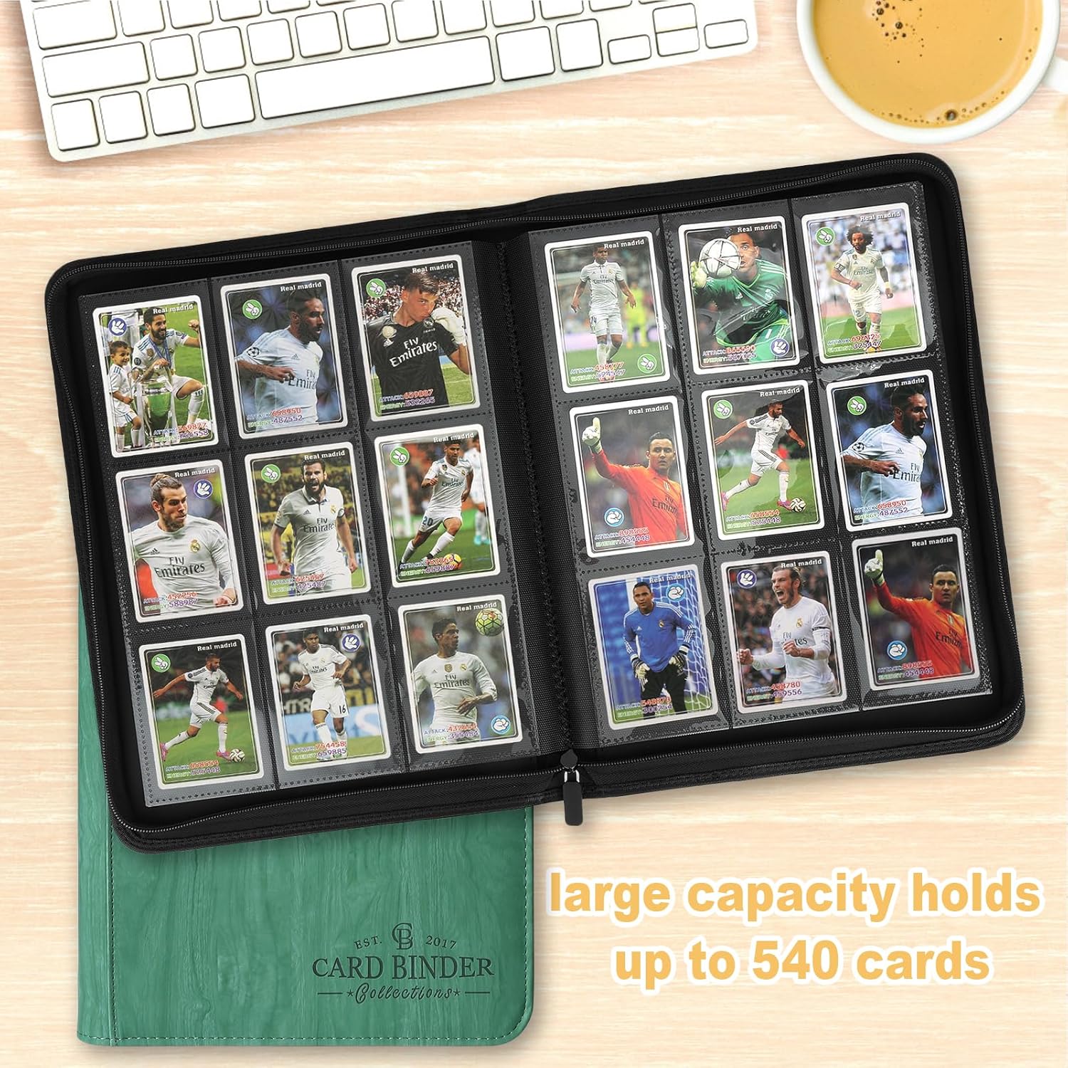 9 Pocket Card Binder, Premium Zip Trading Card Binder, 540 Double Sided Pocket PU Collection Binder, Collector Album, Card Folder for MTG, TCG, Sports Cards