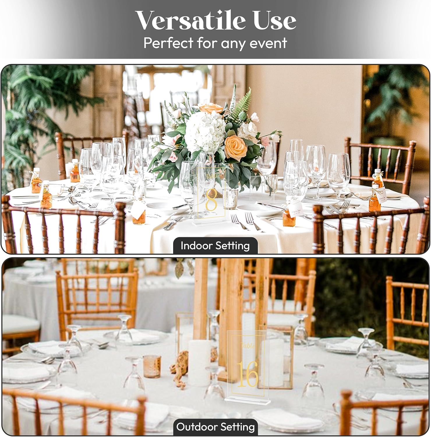 - [MULTIPURPOSE] The acrylic table numbers are versatile and can be used for various occasions and important events such as weddings, parties, anniversaries, birthdays, engagements, baby showers, rehearsal dinners, celebrations, bridal showers, cafes, buffets, etc. Organize your events with perfect seating for your guests and enjoy with them.