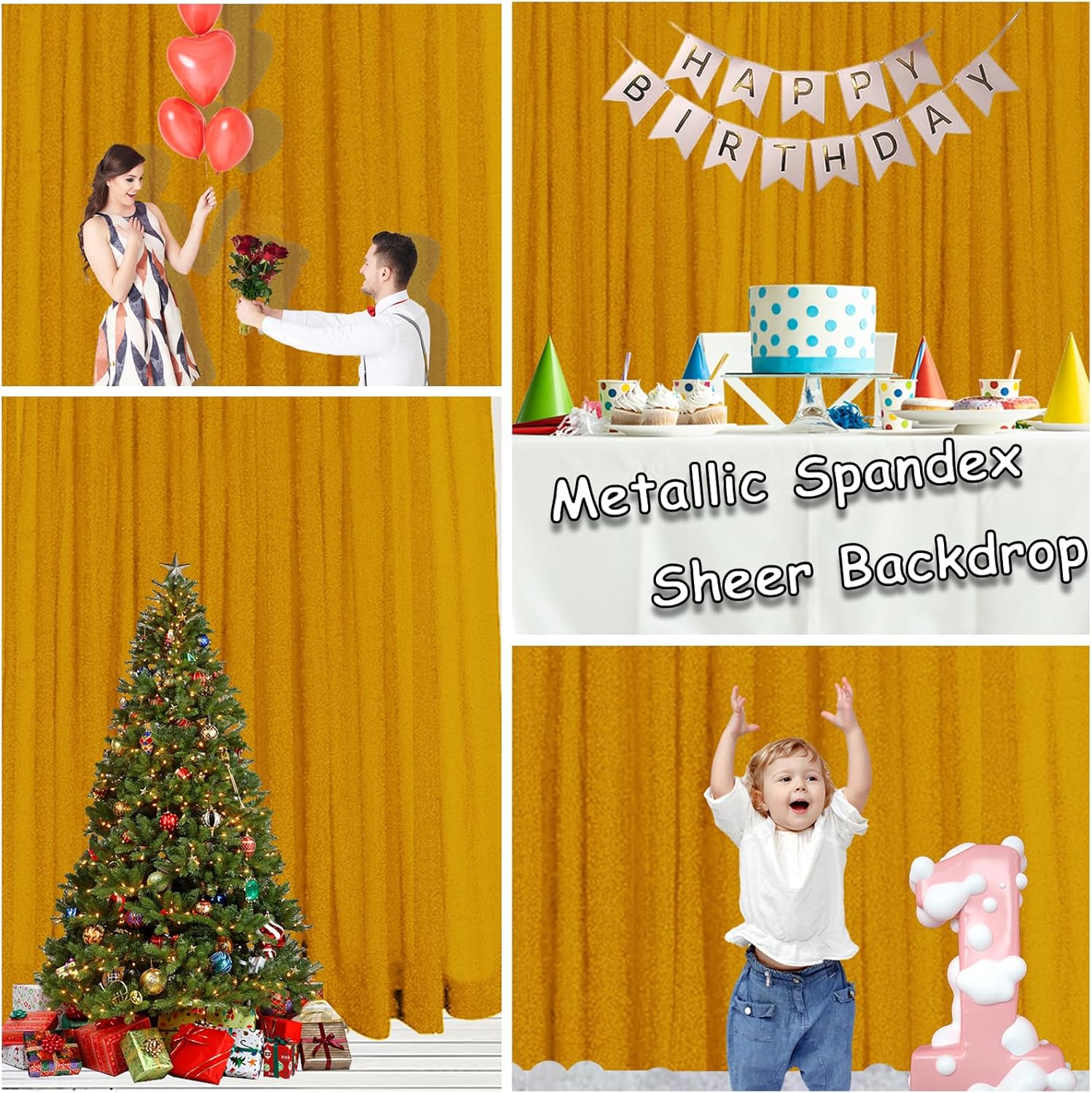 - [Stretch Backing + Shiny Polyester Thread] The gold backdrop is made of sheer fabric woven together with shiny polyester thread that has a slight stretch. The surface has a delicate metallic shimmer, which gives a high-class reflective effect when taking photos and easily enhances the splendor of the scene.