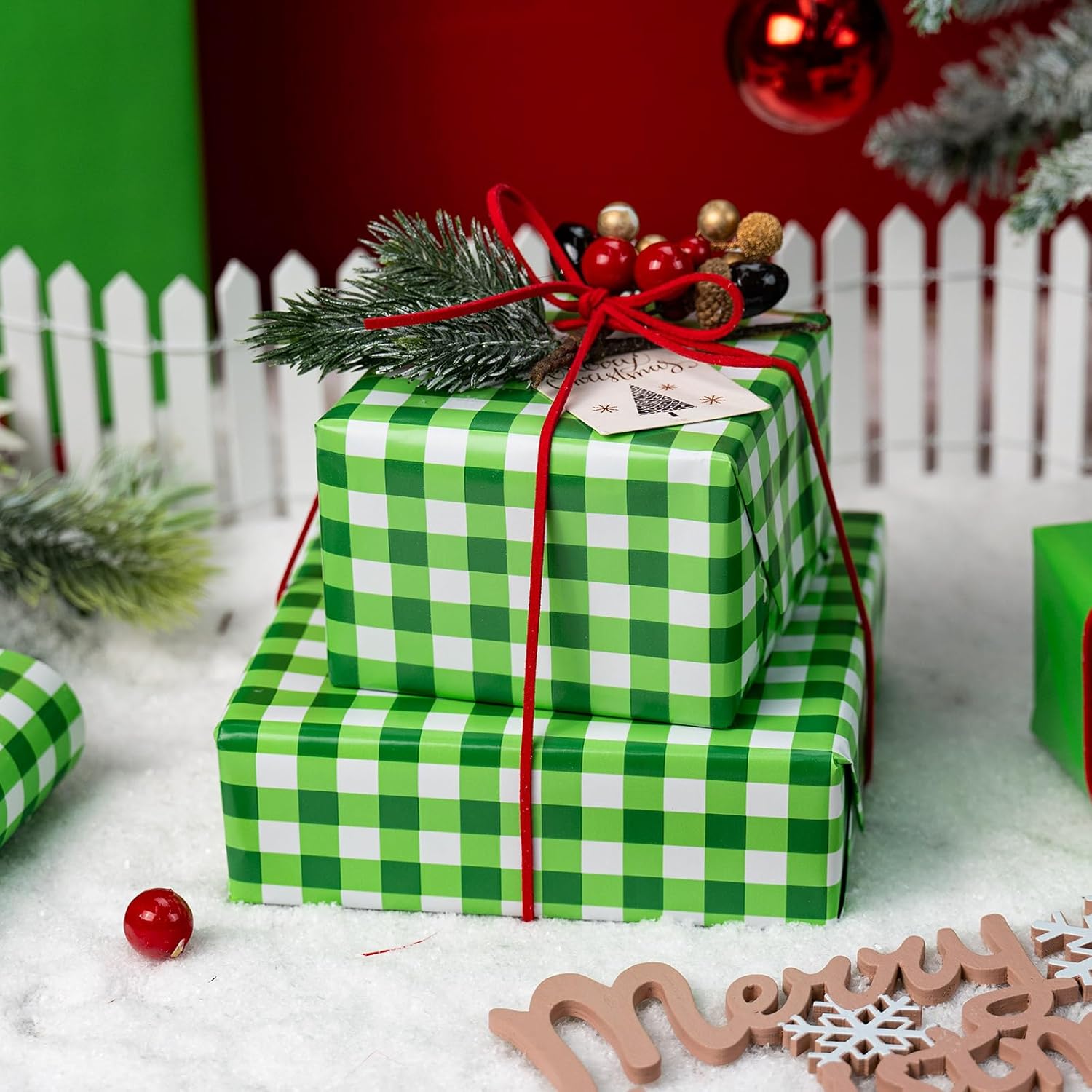 - Wrapping Paper: Features a stylish green checkerboard pattern, making your gift wrap stand out and look extra special. The back has grid lines for easy cutting and less waste