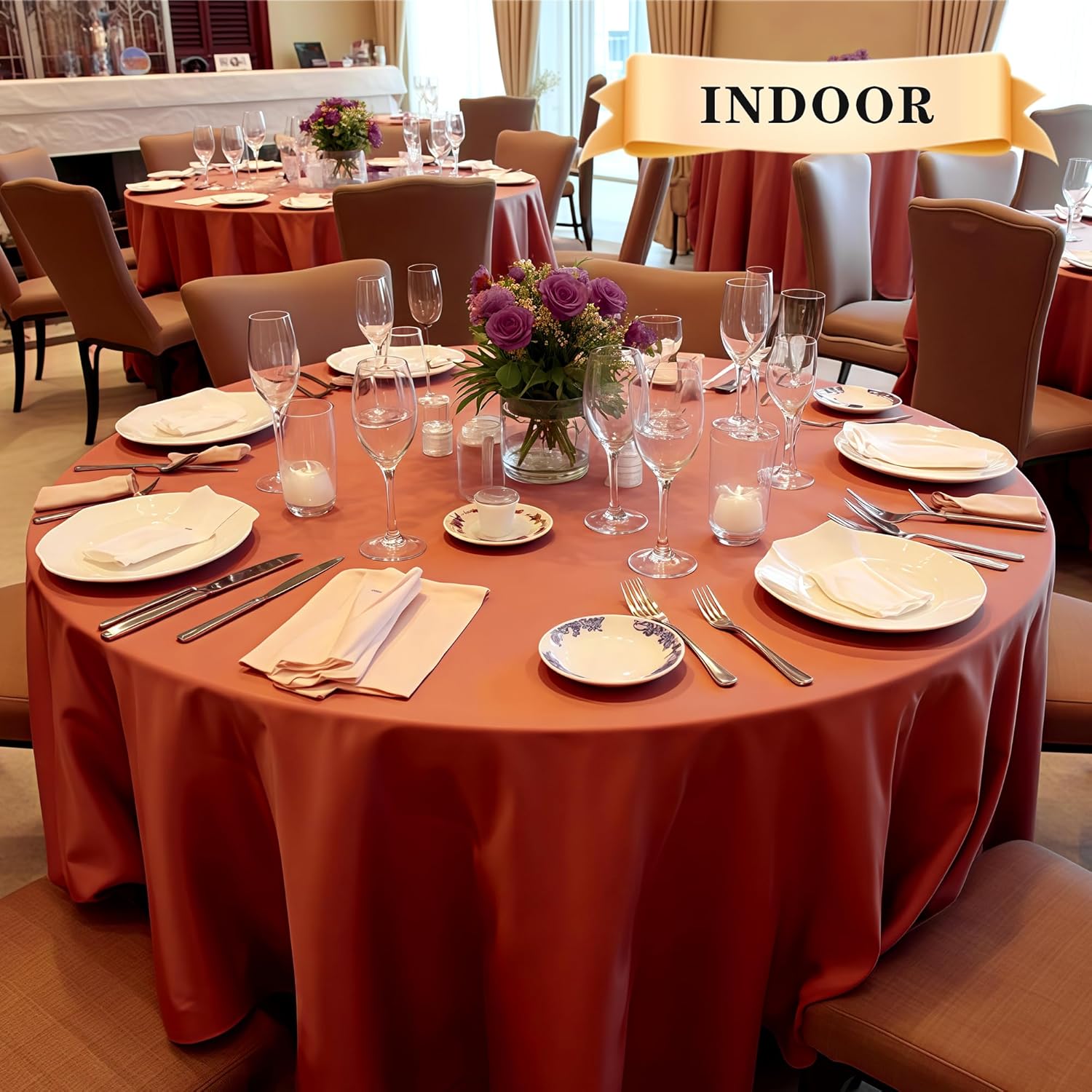 sancua 6 Pack Thanksgiving Round Tablecloth 90 Inch Burnt Orange, Stain and Wrinkle Resistant Fall Table Cloth - Washable Polyester Fabric Table Cover for Dining, Buffet Parties and Camping, Rust