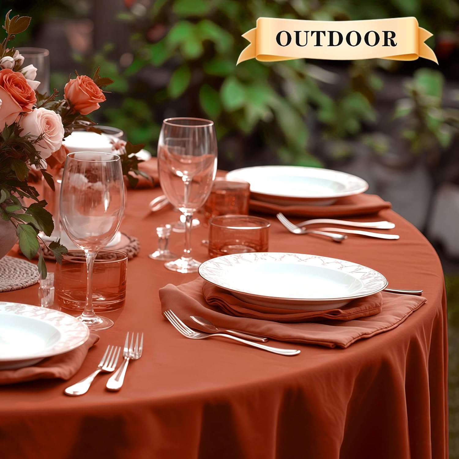 sancua Thanksgiving Round Tablecloth - 90 Inch Burnt Orange - Water Resistant Spill Proof Washable Polyester Fall Table Cloth Decorative Fabric Table Cover for Dining Buffet Parties and Camping, Rust