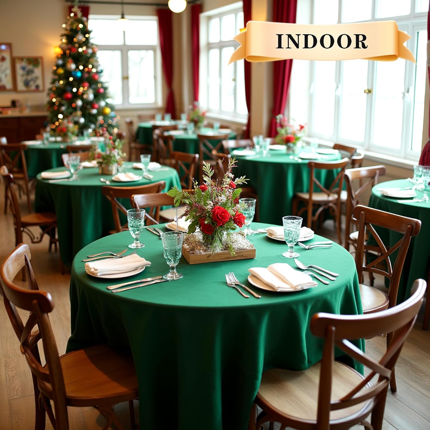 sancua 6 Pack Round Tablecloth 90 Inch Hunter Green, Stain and Wrinkle Resistant Table Cloth - Washable Polyester Decorative Fabric Table Cover for Dining Tables, Christmas Parties and Camping