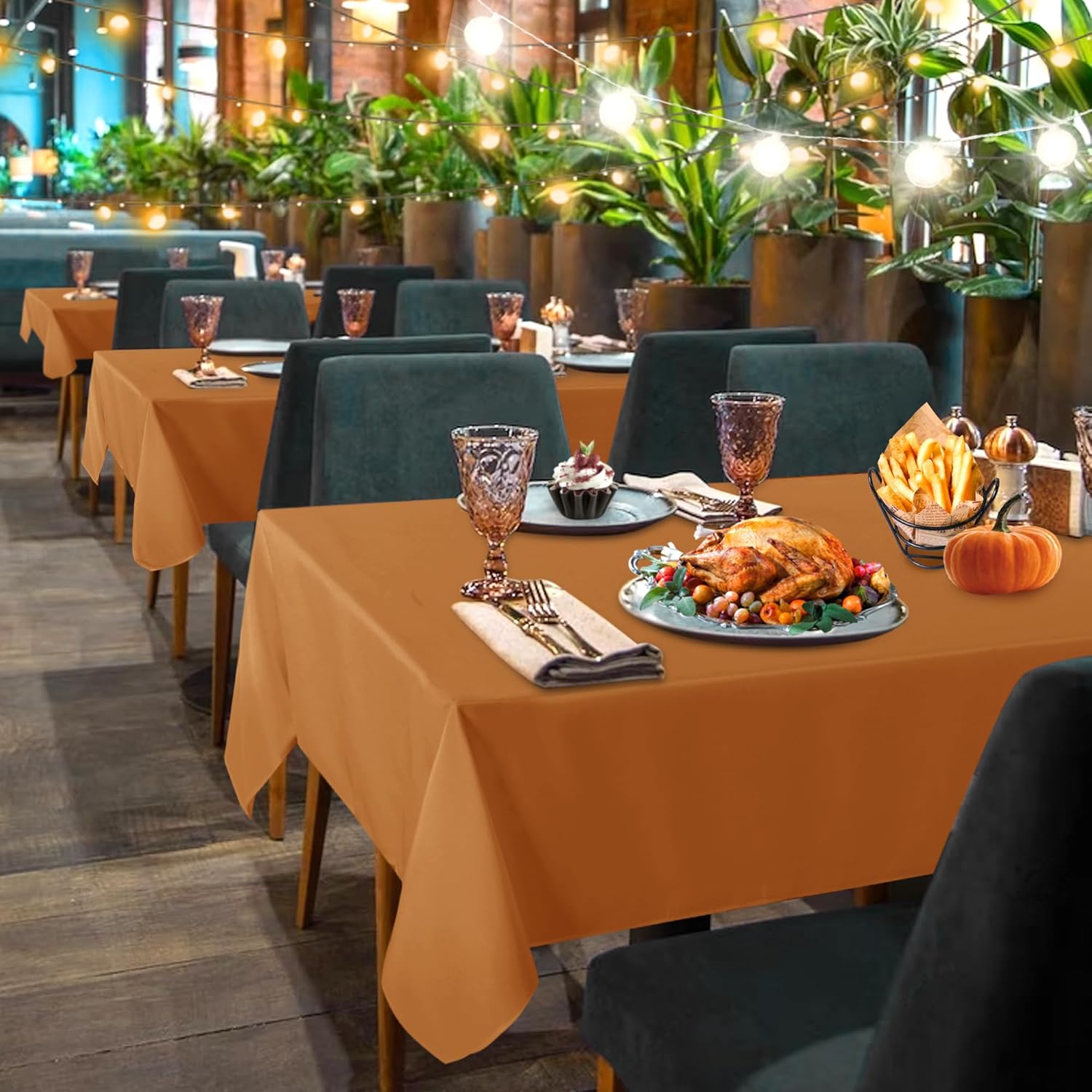 - MEASUREMENTS: This bronze fall table cloth is 60 inch wide and 102 inch long, perfect for standard 6ft table, providing 15 inch drop.