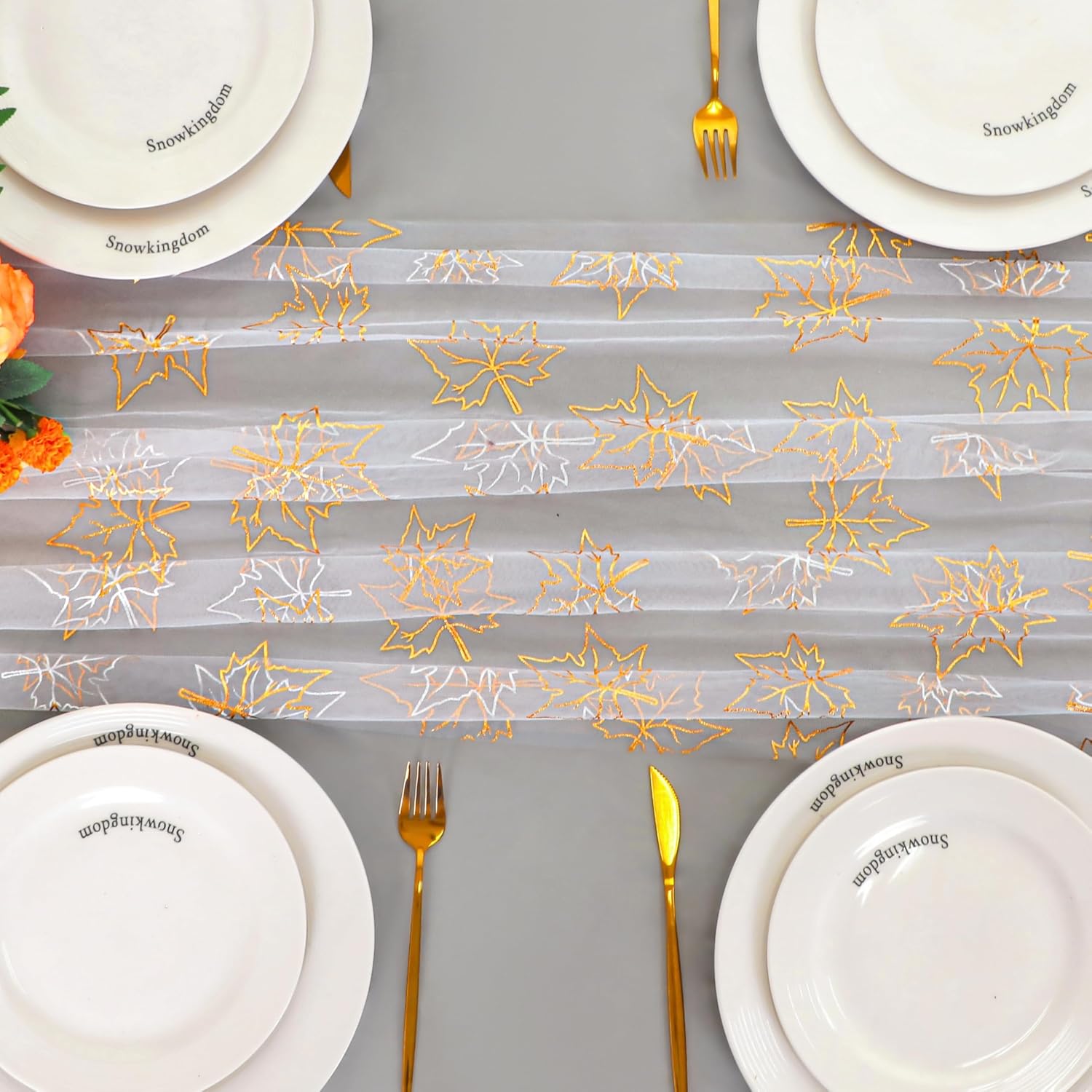 - Unique Design: The fall gauze chiffon table runners with gold mapel and white mesh design, lightweight, infusing glamour and romance into any setting