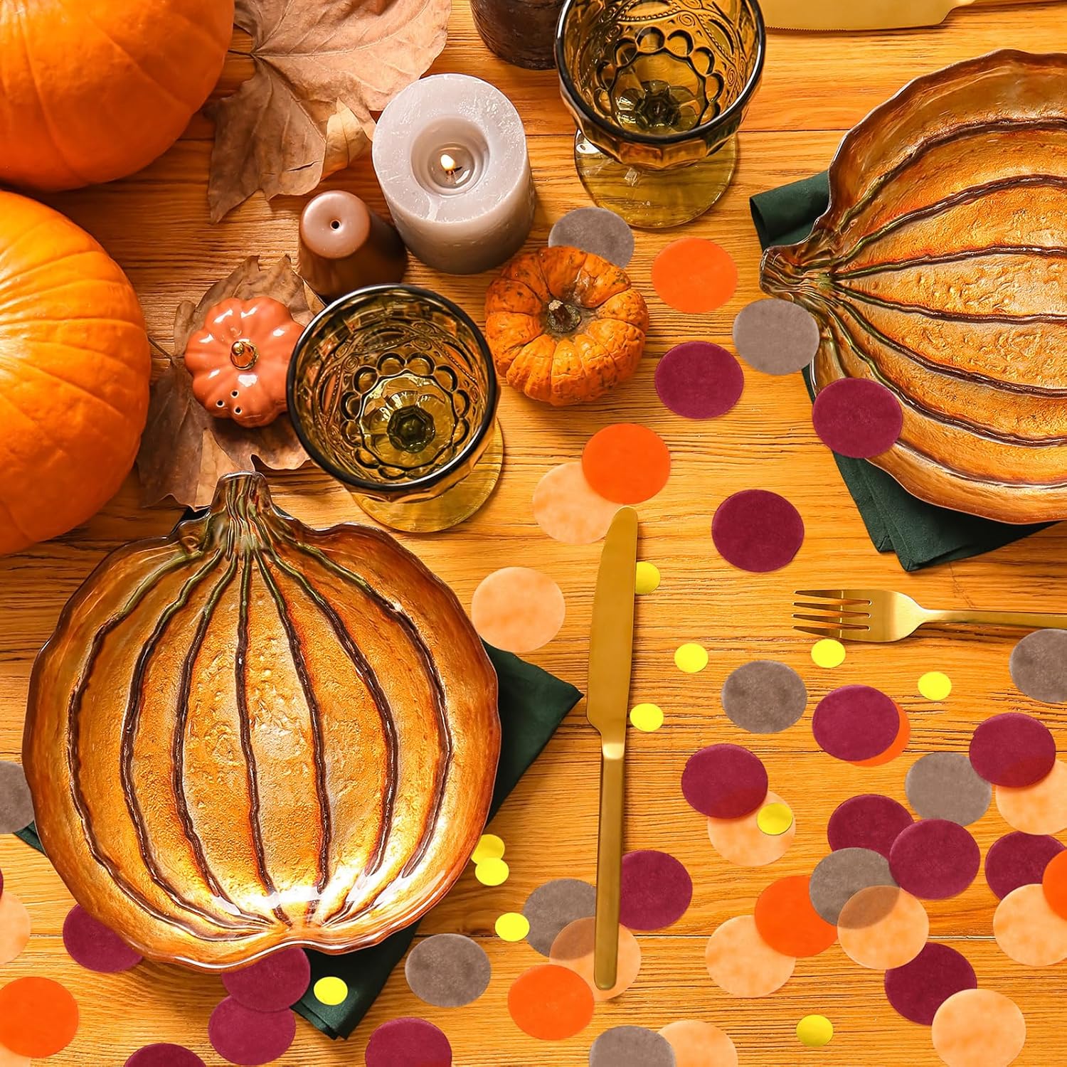 - Vibrant Fall Color Palette for Festive Tables: this 115 piece confetti set features maroon, warm orange, red wine, and golden etc, crafted from fall color tissue paper; Each 1" circular piece adds a pop of seasonal charm to tables, making it the confetti for tables at Thanksgiving dinners, harvest parties, or autumn weddings