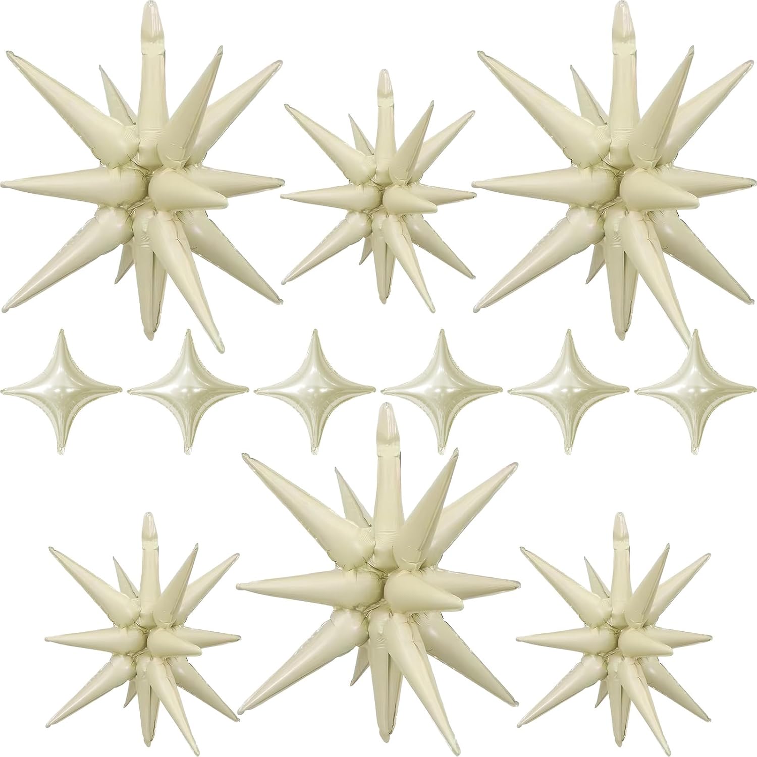 Cream Star Balloons 12pcs, 27/22 Inch Foil Beige Explosion Star Balloons, Large Spike Mylar Cone Nude Balloon, Boho Neutral Balloon Aesthetic Party for Baby Bridal Shower Wedding Birthday