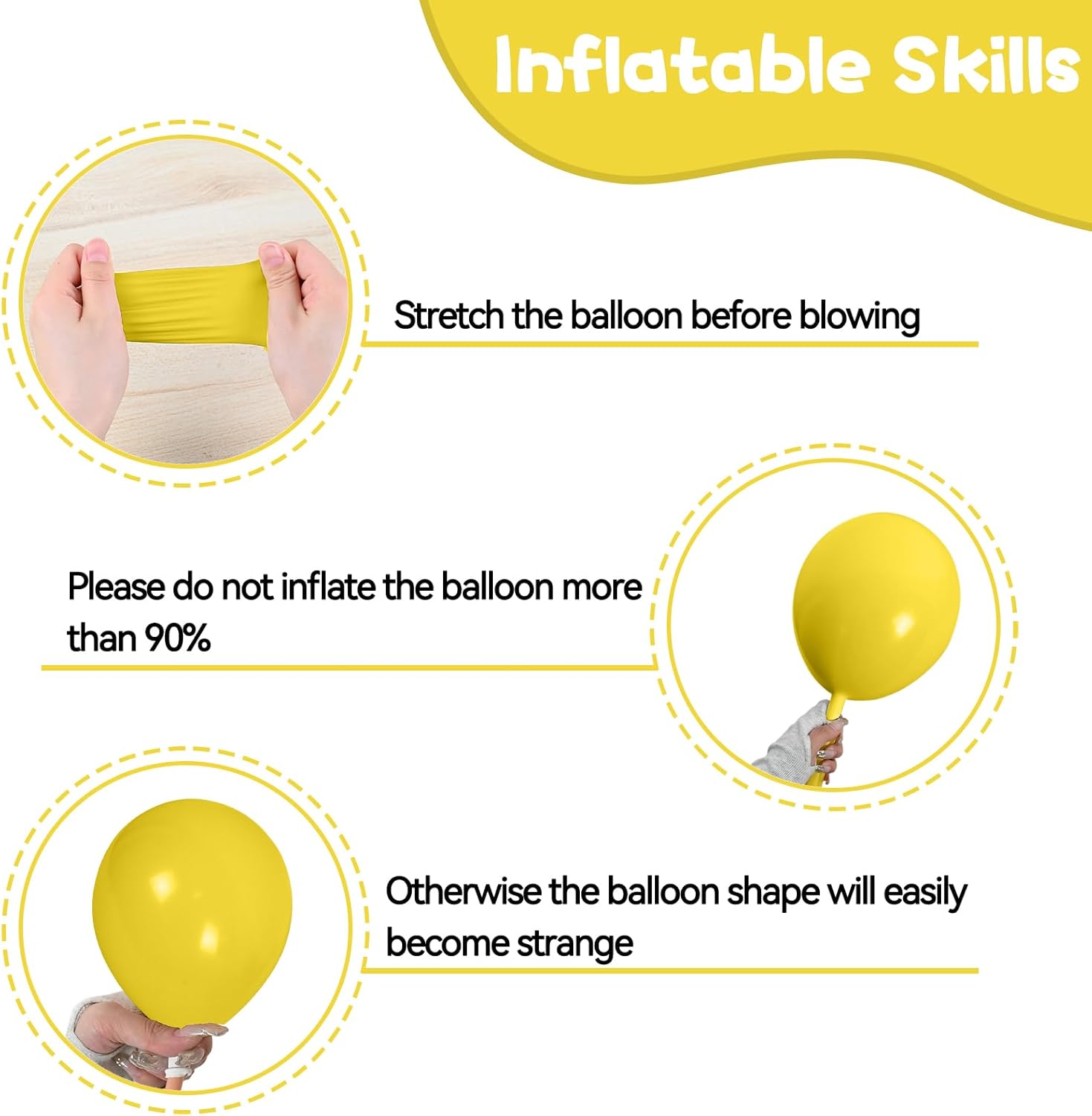 - Balloon material: All balloons are made of natural latex, and each balloon has been strictly hand-tested. The balloons are elastic, non-toxic, harmless and safe. They can be filled with air or helium, and it is recommended to use with a balloon pump