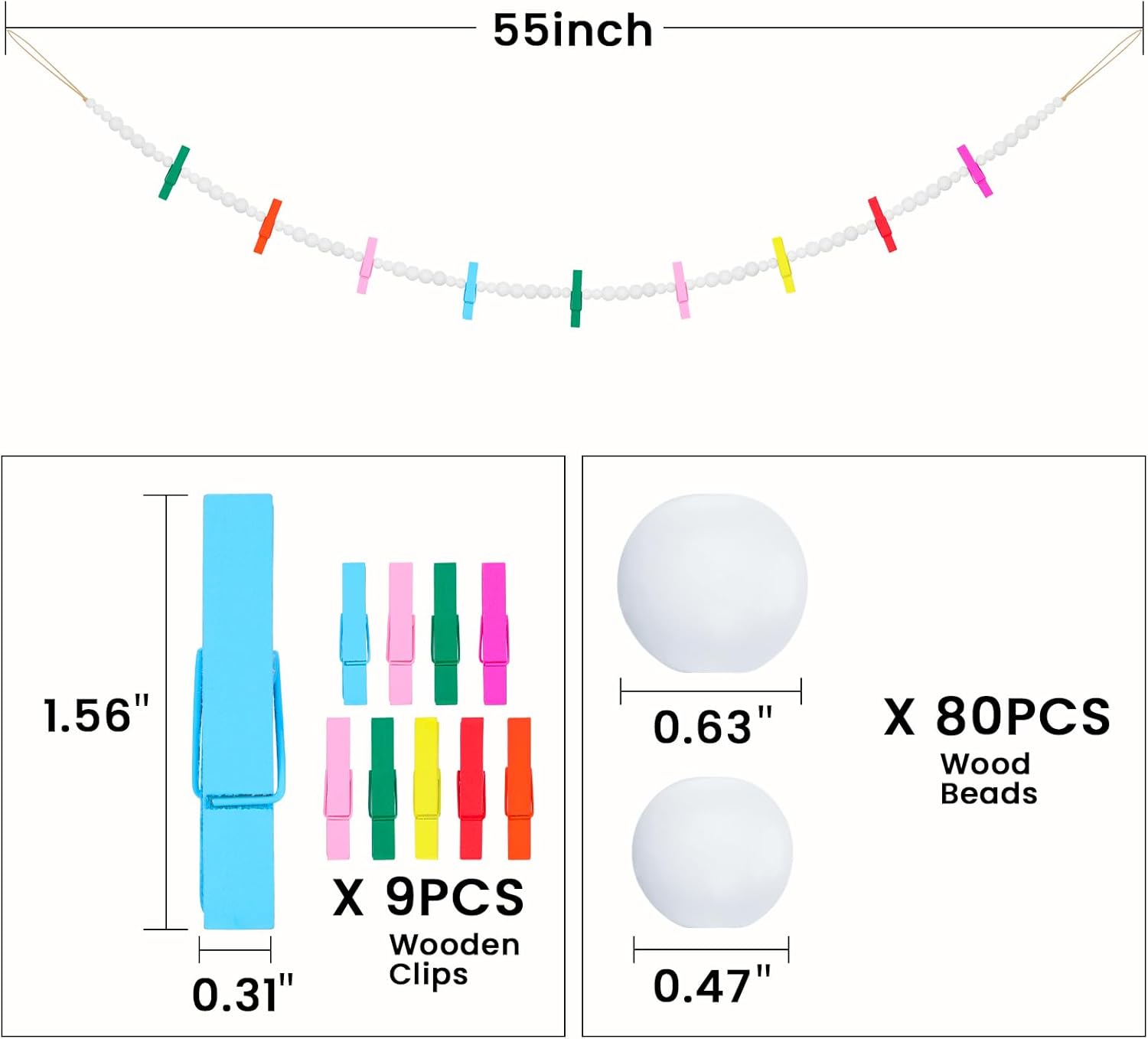 - High-Quality Material: Photo garland is handmade by white wooden beads and jute rope, which is durable, corrosion-resistant and non-toxic, not easy to break and fade, can be applied for a long time. Note: The colours of the wooden clips are random