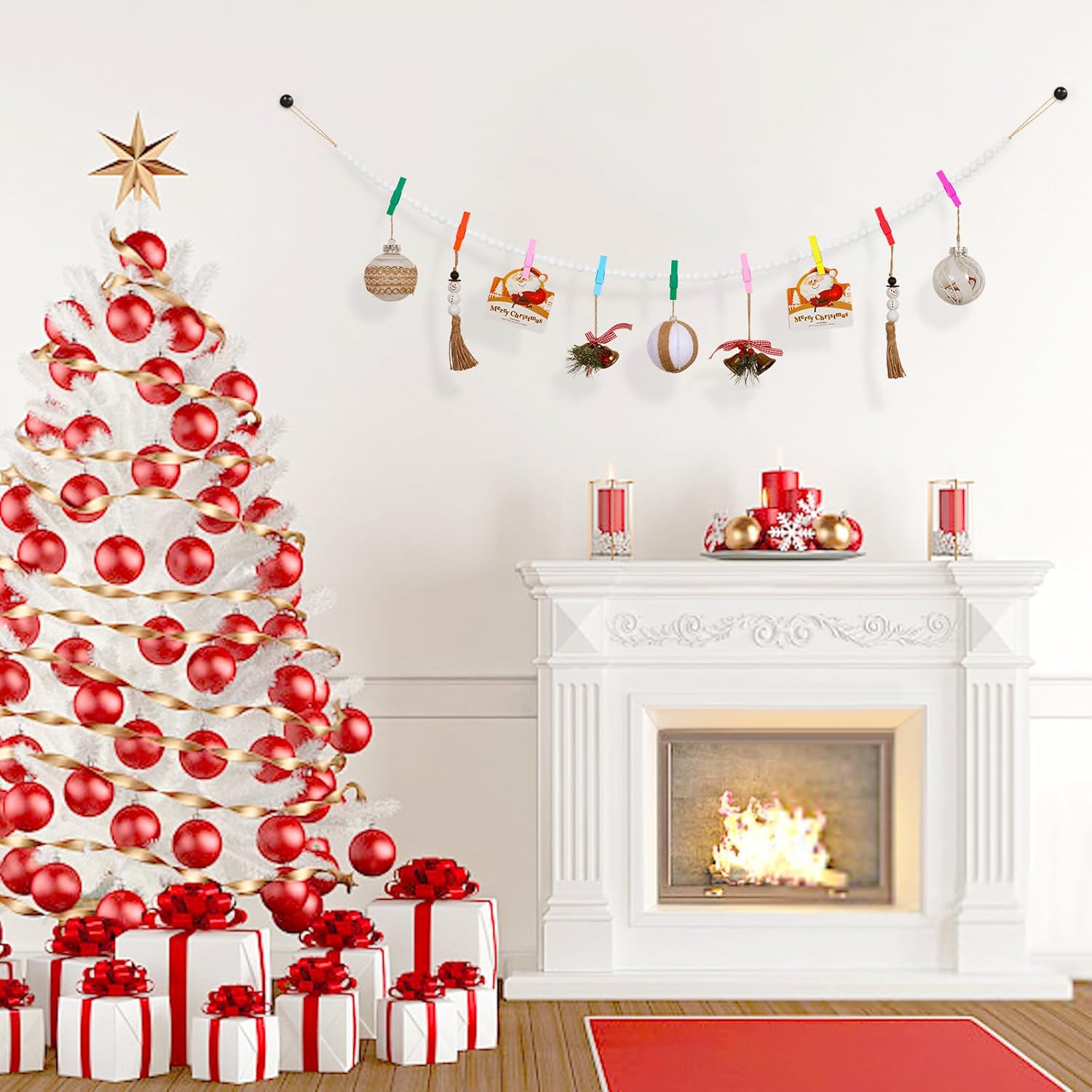 Hanging Photo Display Wall Decor, Wooden Bead Garland Collage Picture Frame with 9 Different Random Colors Wood Clips for Boho Bedroom, Living Room, Office, Dorm Decor