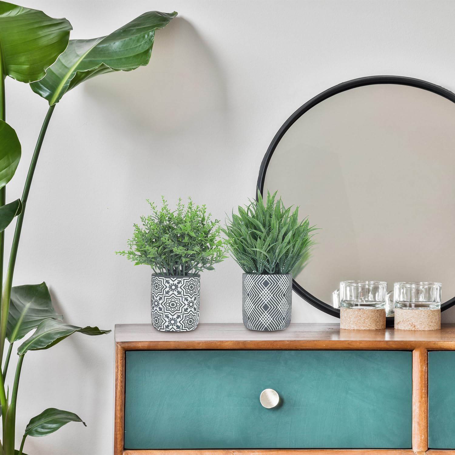 - Durable Material with Fashionable Style: Made of premium plastic, these small fake plants wonβt wither or fade. Featuring a sleek geometric pattern and a cement ceramic texture, this planter effortlessly blends modern minimalism with natural charm. Ideal for enhancing Scandinavian, industrial, or boho-style interiors.Please Note: The ceramic pots are fragile β handle with care
