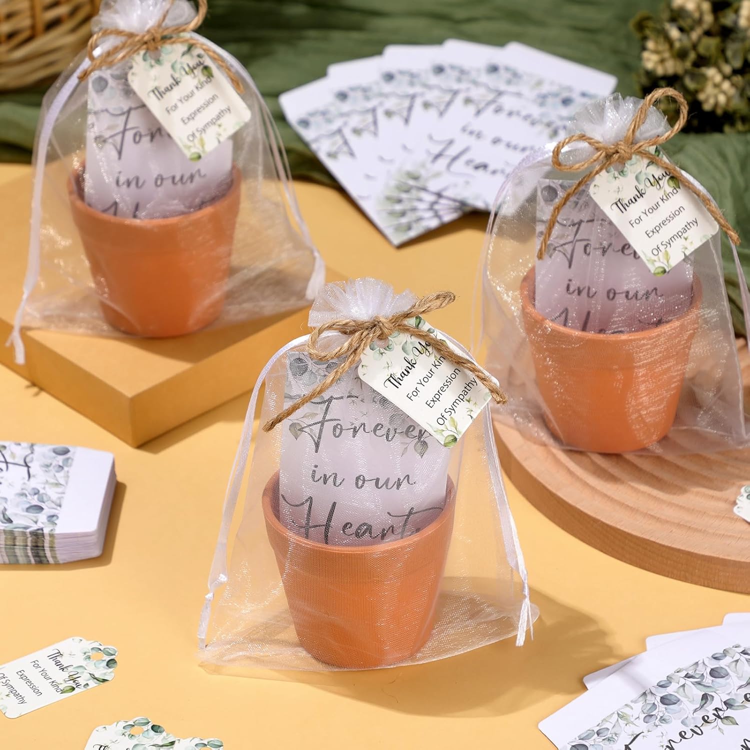 Ctosree 50 Sets Funeral Favors for Guests Greenery Celebration of Life Gifts Include Seed Packet Flowerpot Thank You Cards Hemp Ropes Organza Bags for Guest Funeral Party Memorial Party Return Gifts