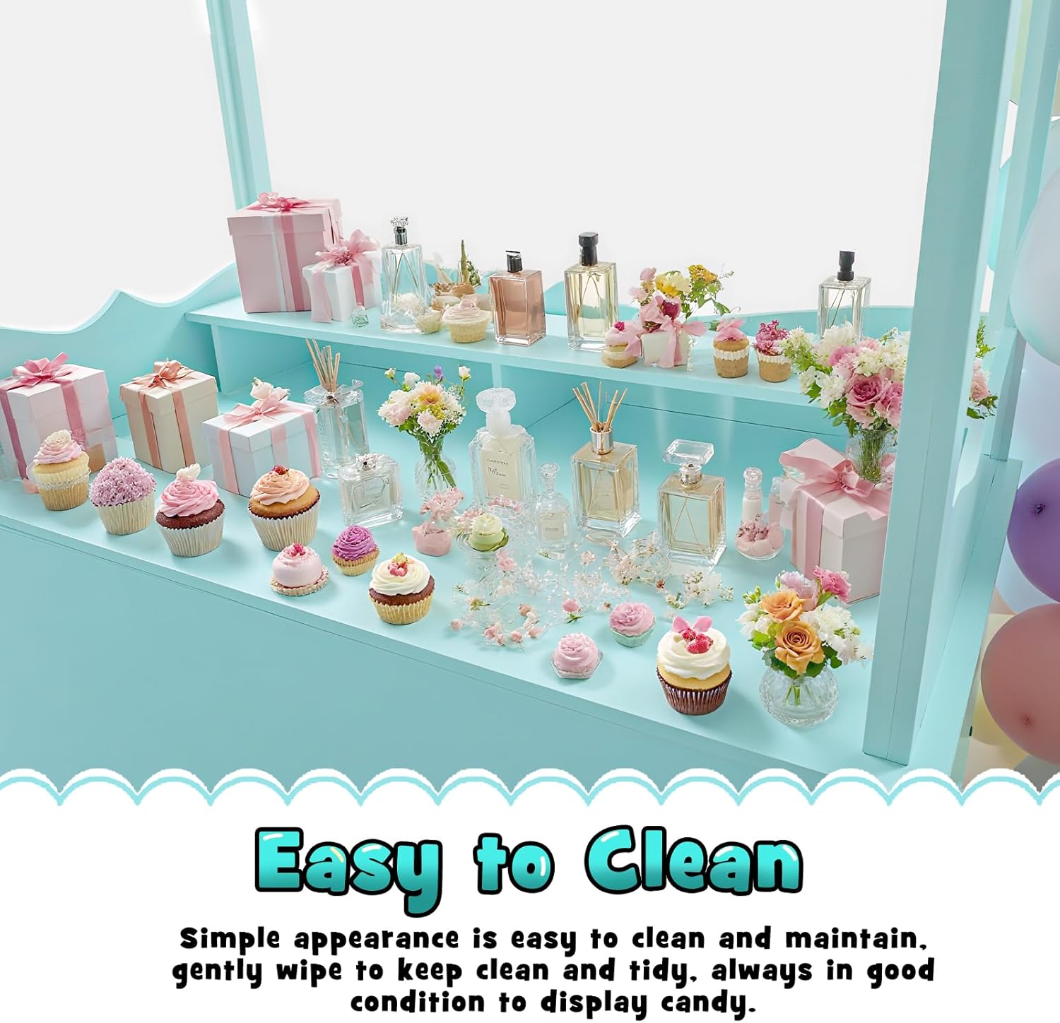 - Our Candy Cart Display Stand is designed to be the focal point of your event, providing a practical and visually appealing solution for showcasing your treats. With its spacious shelves and sturdy construction, you can easily arrange an array of candies, cakes, cupcakes, and other sweet delights, enticing your guests with a mouthwatering spread.
