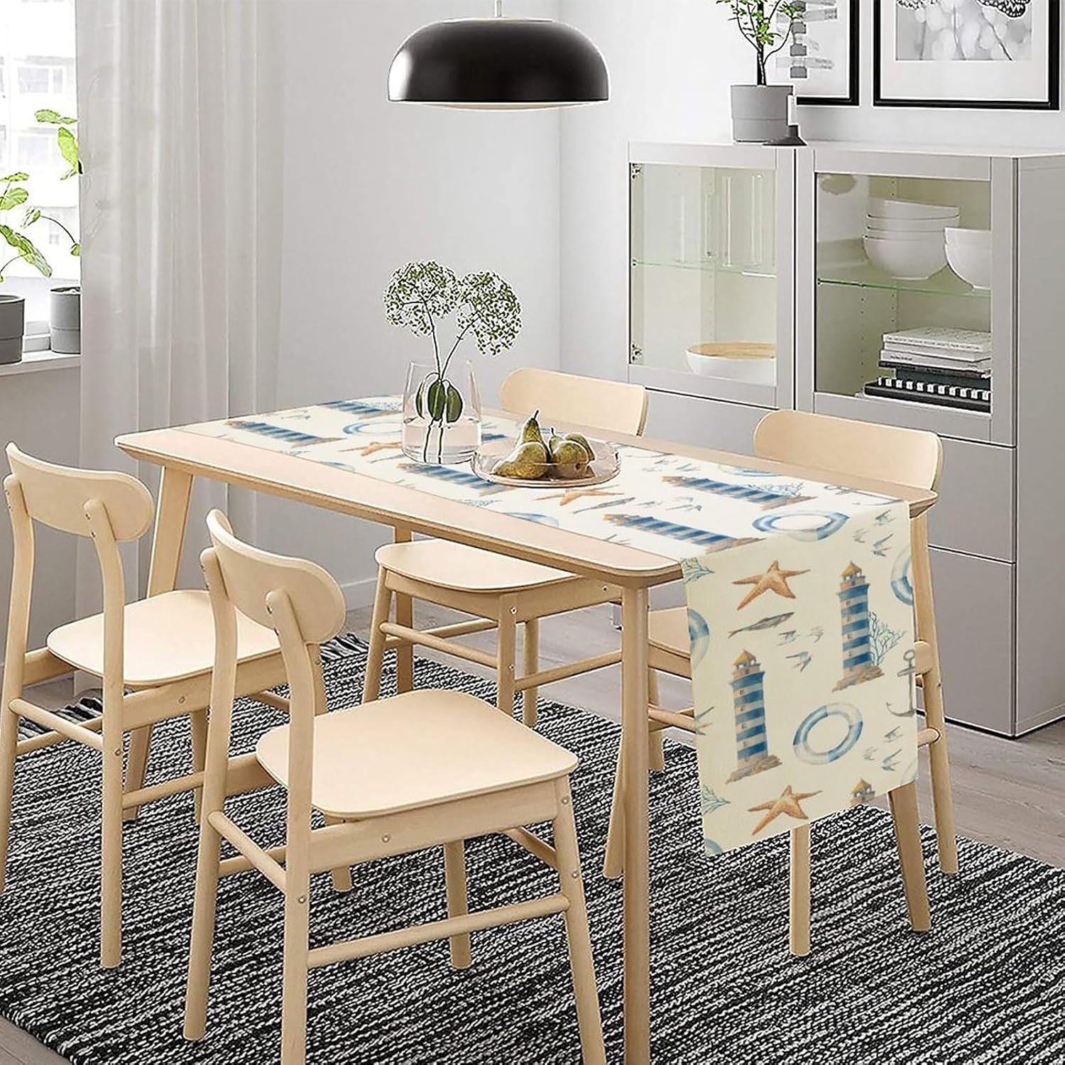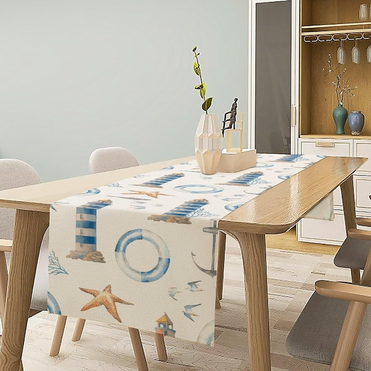 Blue Beach Table Runner, Tropical Ocean Coast Table Runner, Seashell Seasonal Nautical Restaurant Coffee Table Decorations for Home Holiday Party Indoor Outdoor 13x60 Inch