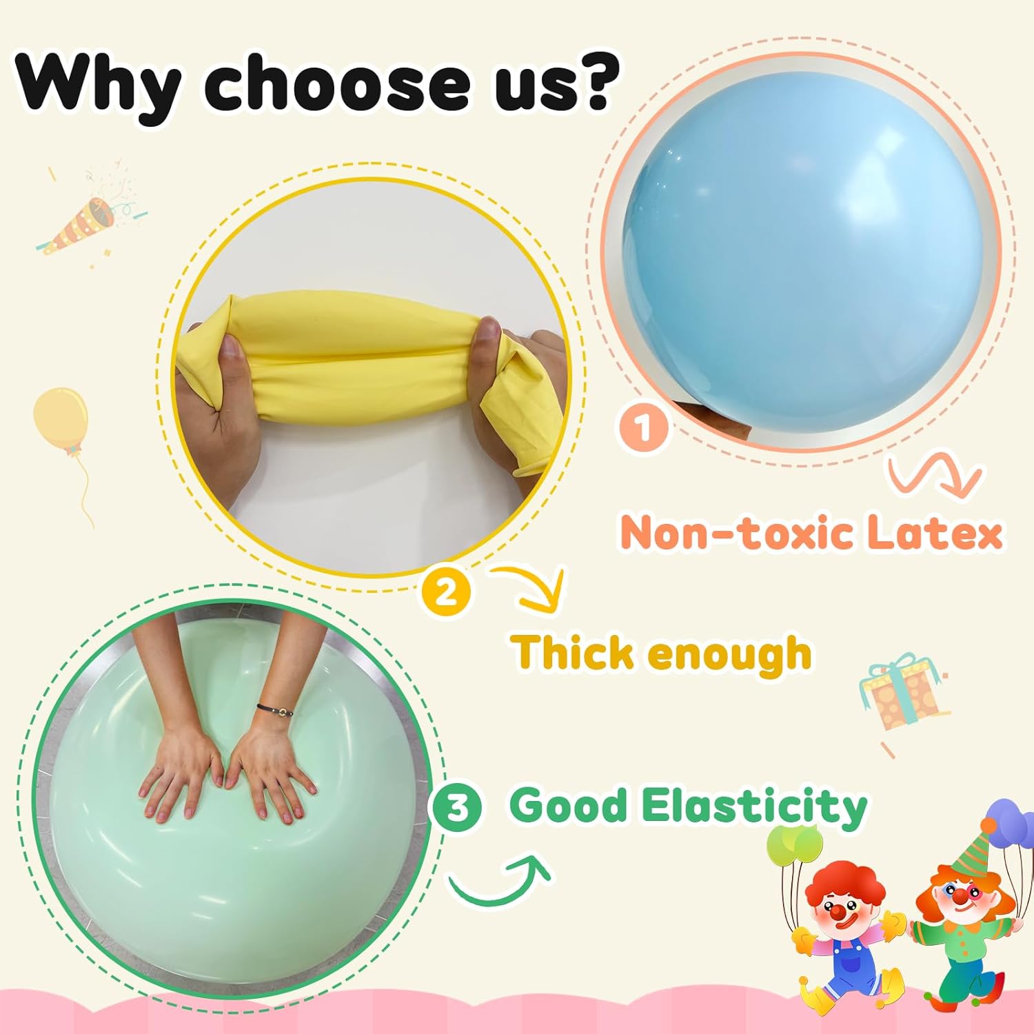 - 【Size& Quantity】Each sets contains 30pcs 18 inch large pastel colorful balloons. Big balloons are safe, heavy thick, bouncy and Eco-friendly latex material which is durable and long-lasting quality, these big round balloons thicker and much strong than typical balloons for longer lasting fun.