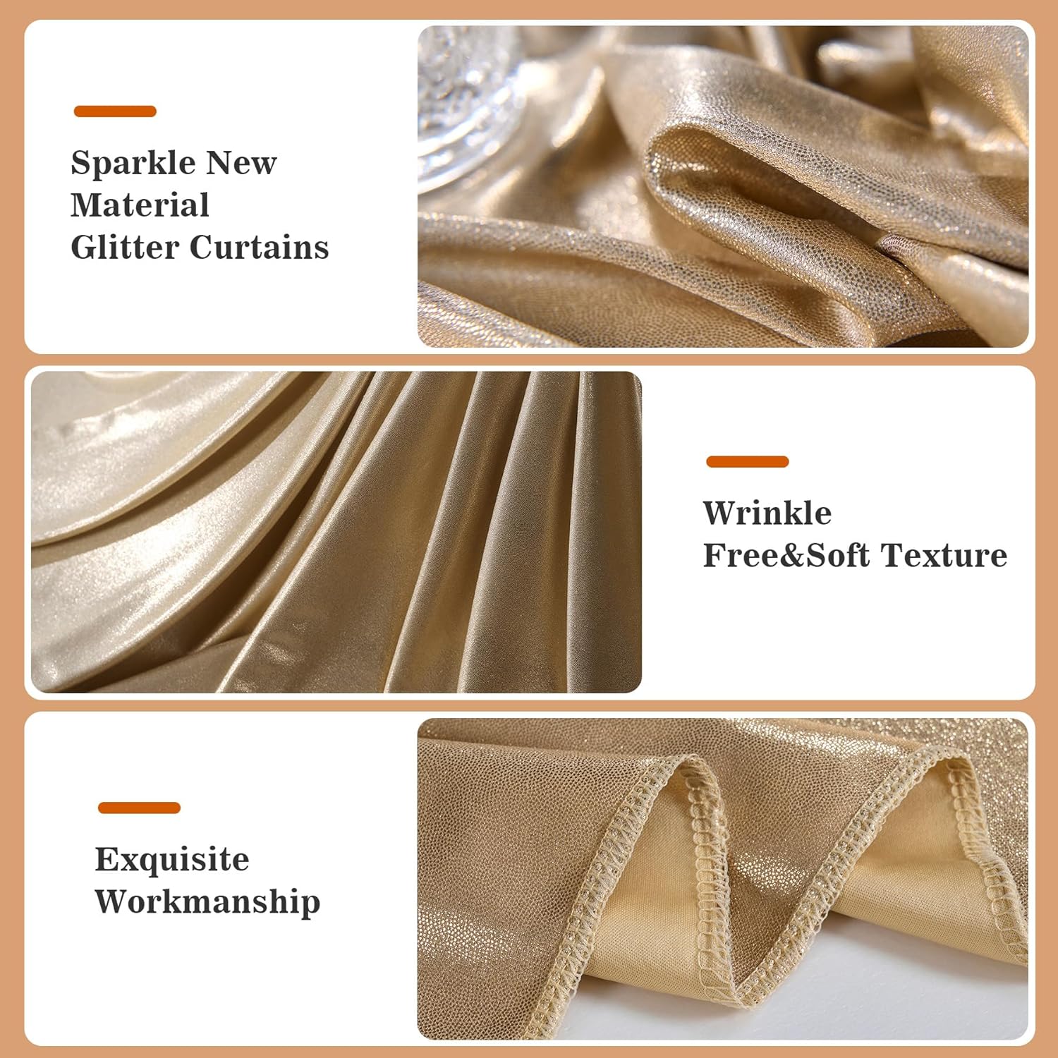 10x10ft Thick Champagne Glitter Backdrop Curtain Panels for Parties, Wrinkle Free Sequin Sparking Photo Backdrop Drapes, 2 Panels 5x10ft Shimmer Back Drop Cloth for Wedding Birthday Photography
