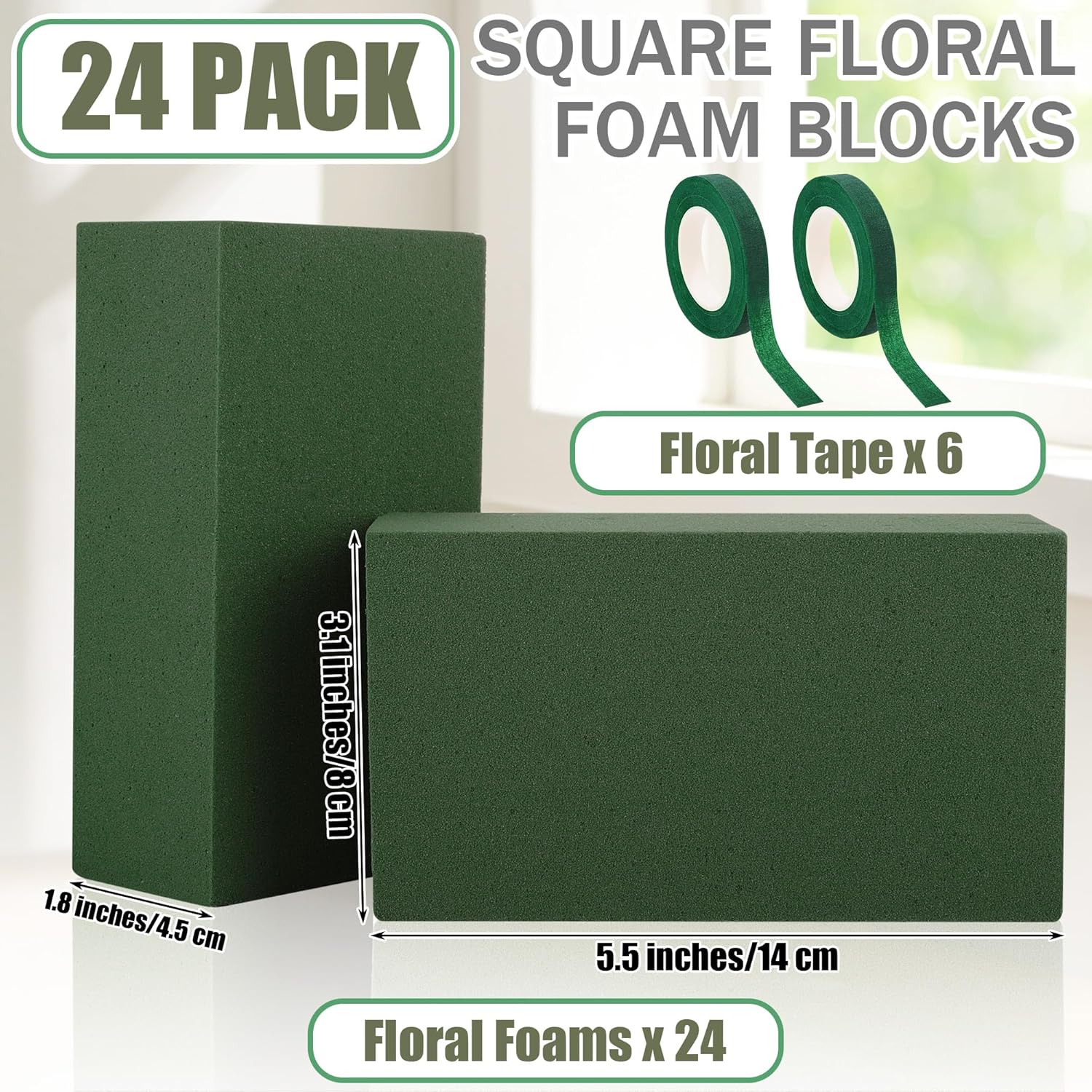 - Complete Floral Arrangement Kit: our floral foam blocks set includes 24 floral foams square, and 6 rolls of green floral tape for all your flower arranging needs. Ideal for both fresh and artificial flowers, this kit supports a variety of creative floral projects; with this set, you'll have all the essential tools to start your floral projects right away