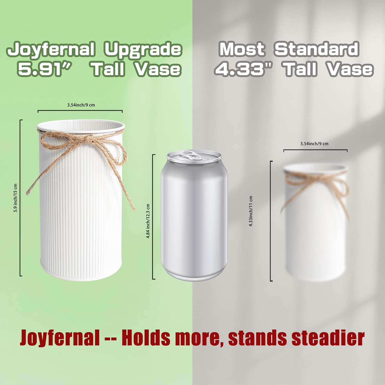 - Upgrade Size: Surpassing standard 11x7cm / 4.33"H*2.76"TD inch vases, our 15x9cm / 5.91"H*3.54"TD inch design provides superior stability for floral arrangements and enhances visual impact as centerpieces for tables. Ideal for wedding centerpieces for tables