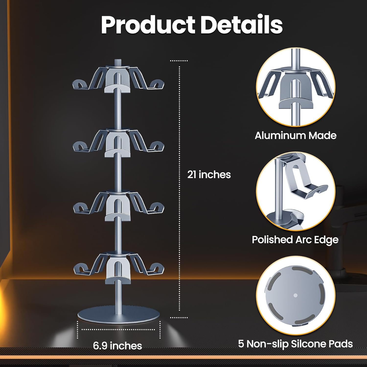 - 360 Degree Rotatable Controller Stand: This PS5 controller holder for desk features a 360-degree rotatable function with 4 individually rotating layers, allowing you to easily access your controllers and headsets from any direction