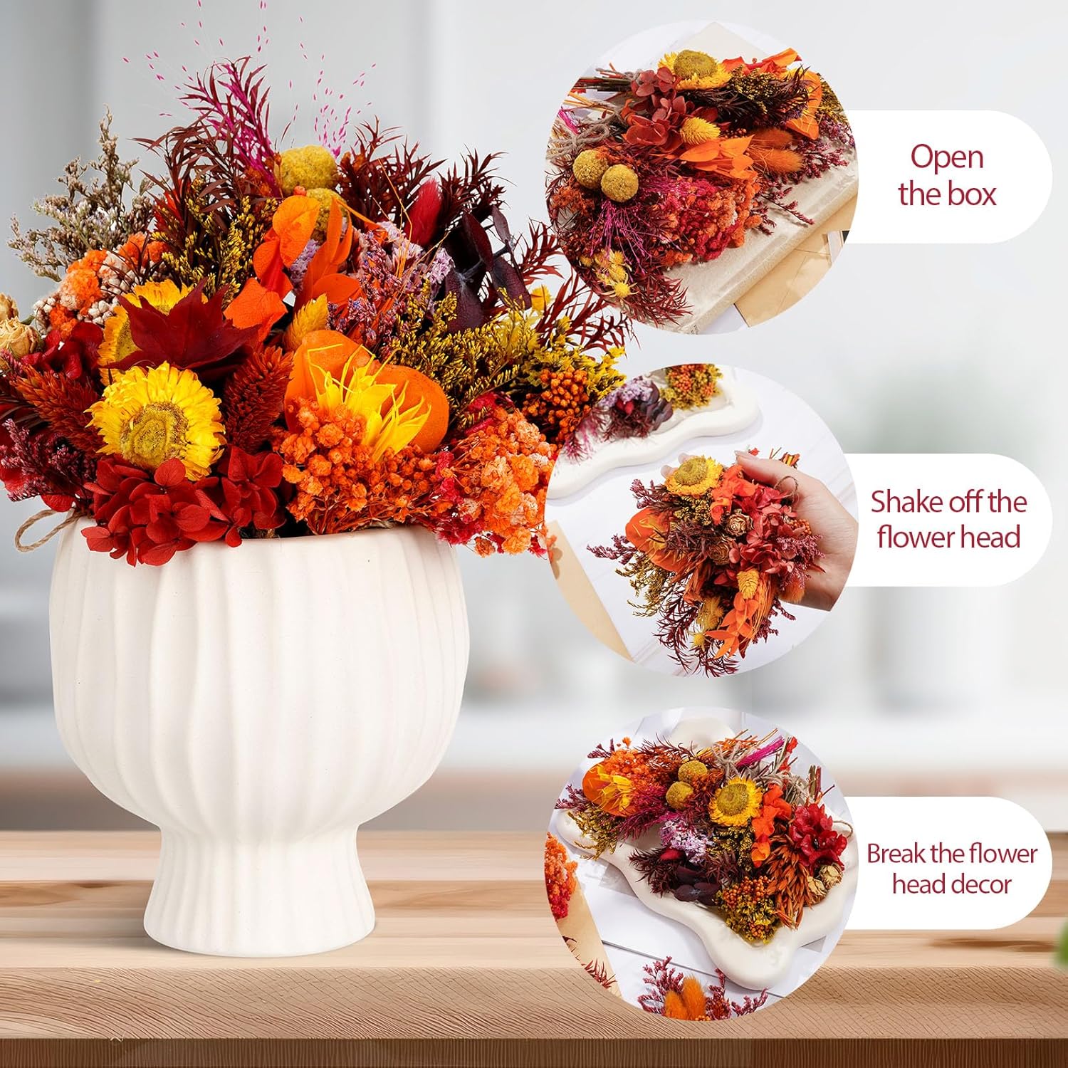 - Versatile: This mini dried flower bouquet is a perfect decoration for home, store, office, restaurant, banquet, party and many other occasions. Decorate bags, vases, windowsills and tables to fill your home with a warm fall atmosphere. It can also be used in handicrafts to add a different style to illustrations, ledgers and photo albums