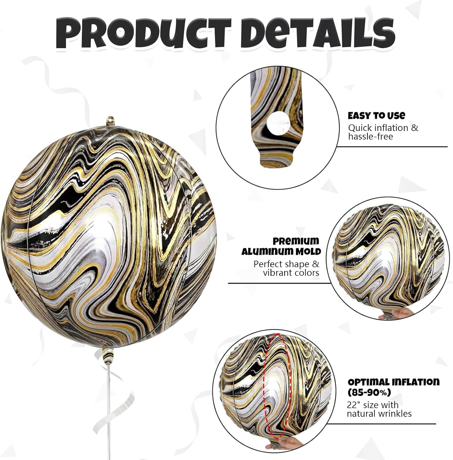- Package Contains β 6 pcs 22-inch Black Gold round foil balloons, 1 pc straw and 1 pc ribbon. These large, eye-catching balloons are perfect for elevating your party decor with a bold and stylish touch.