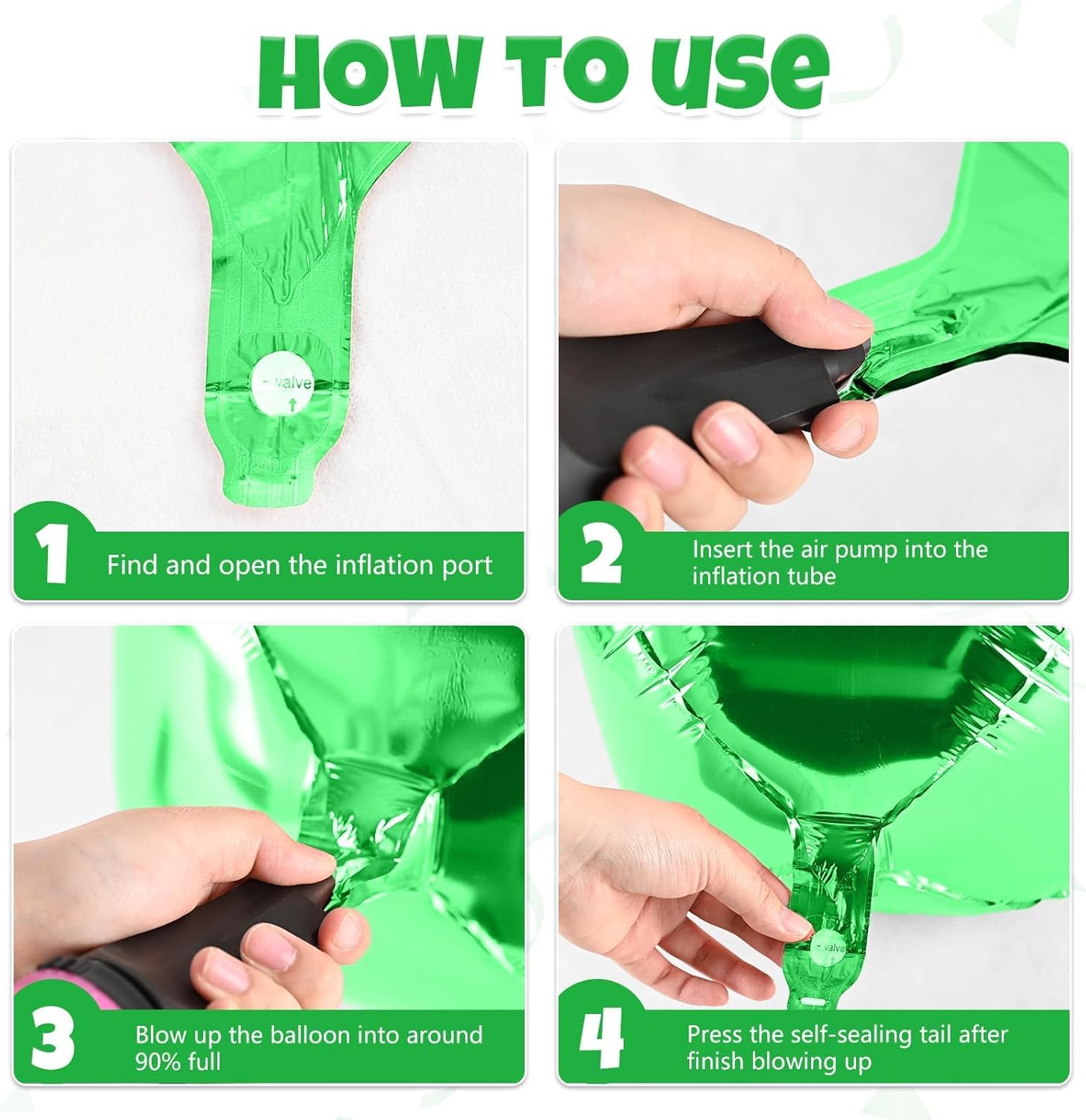 - Package Contains β 6 pcs 22-inch green round 4D foil balloons, 1 pc straw and 1 pc ribbon. These large, eye-catching balloons are perfect for elevating your party decor with a bold and stylish touch.