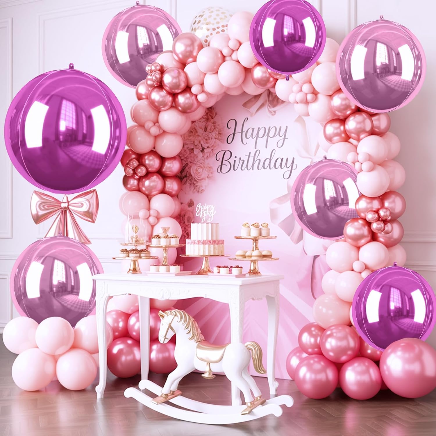 - Package Contains β 6 pcs 22-inch pink and hot pink round 4D foil balloons, 1 pc straw and 1 pc ribbon. These large, eye-catching balloons are perfect for elevating your party decor with a bold and stylish touch.