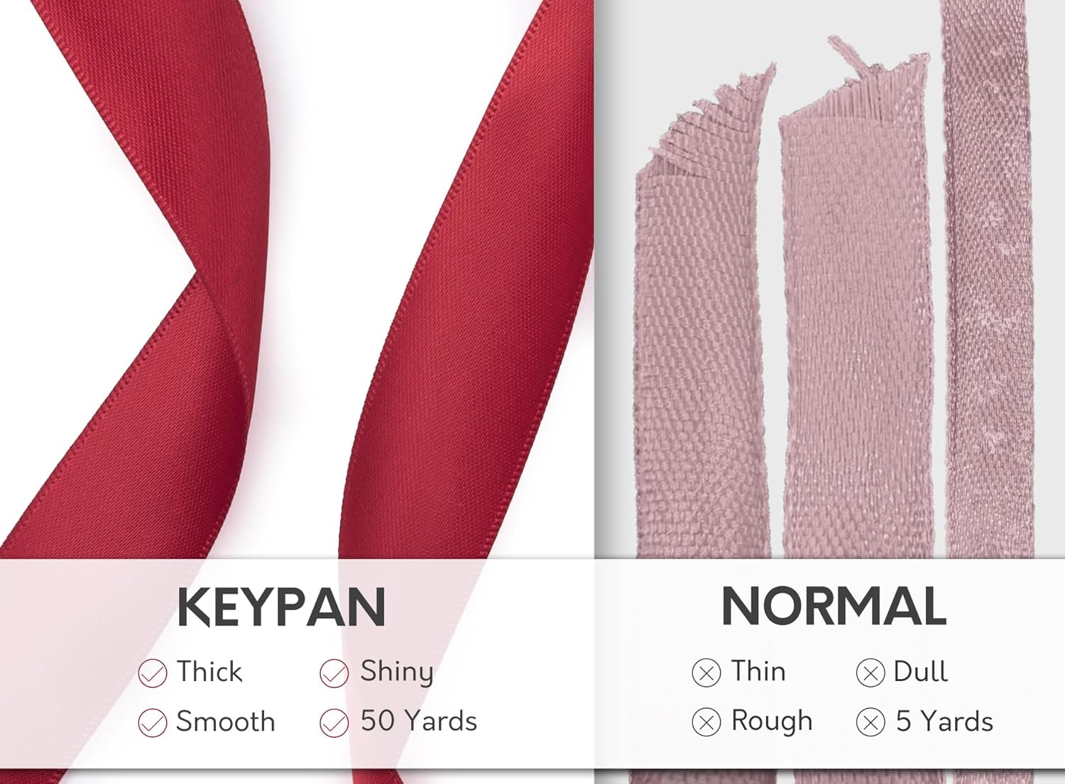 - ELEGANT LUSTROUS SHINE: This satin ribbon has a double-faced backing of high-quality, smooth and shiny polyester satin with a luxurious feel. The ribbon edges are neatly sewn. It is great for adding an elegant touch to your home decor and Christmas tree