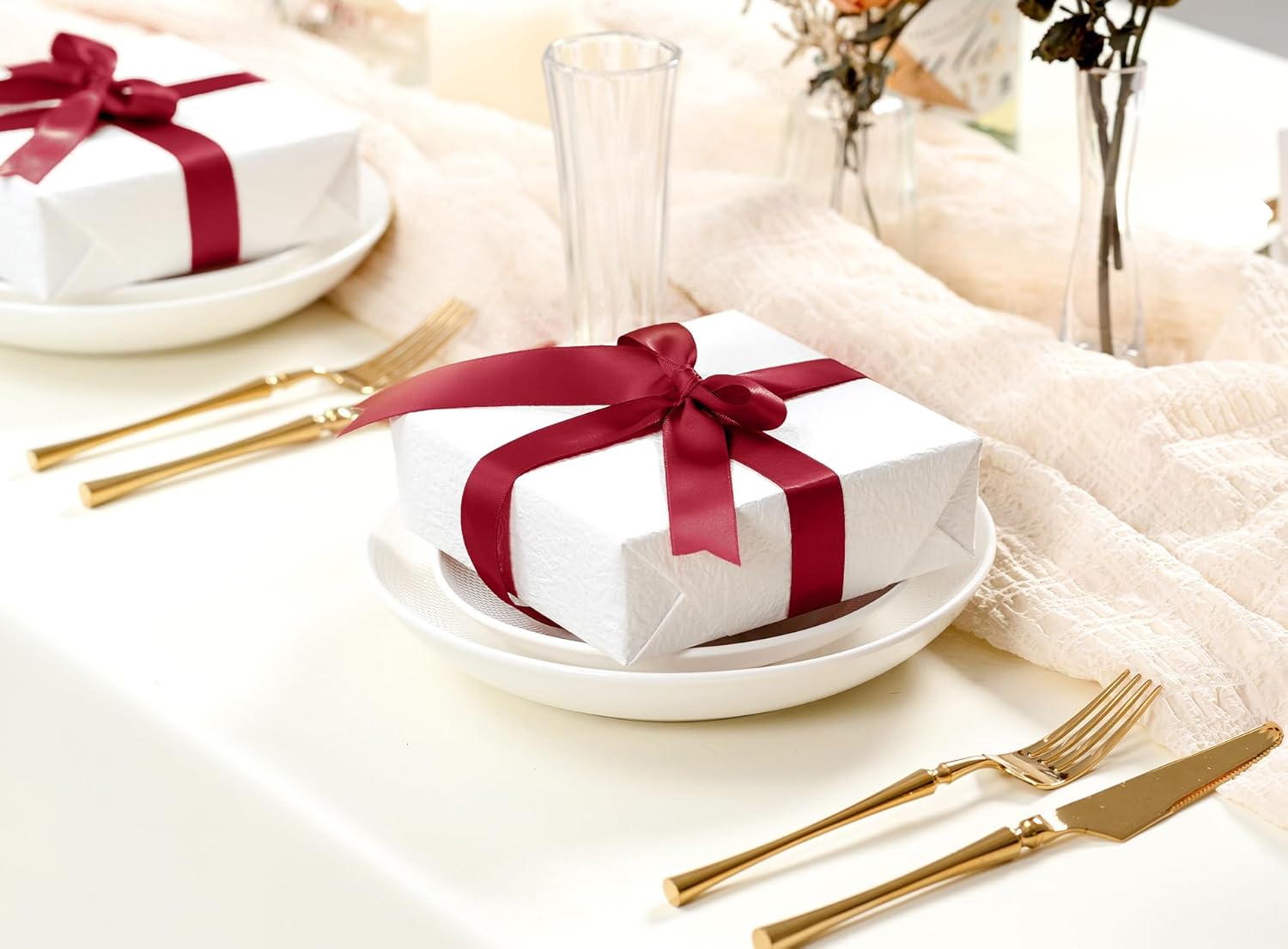 - VARIOUS USAGE: This shiny satin ribbon is a good choice for decorating gifts and home during regular times. It is suitable for flower bouquets, wreaths, gift wrapping, craft projects, headbands, hair ties, Christmas tree decorations, craft projects