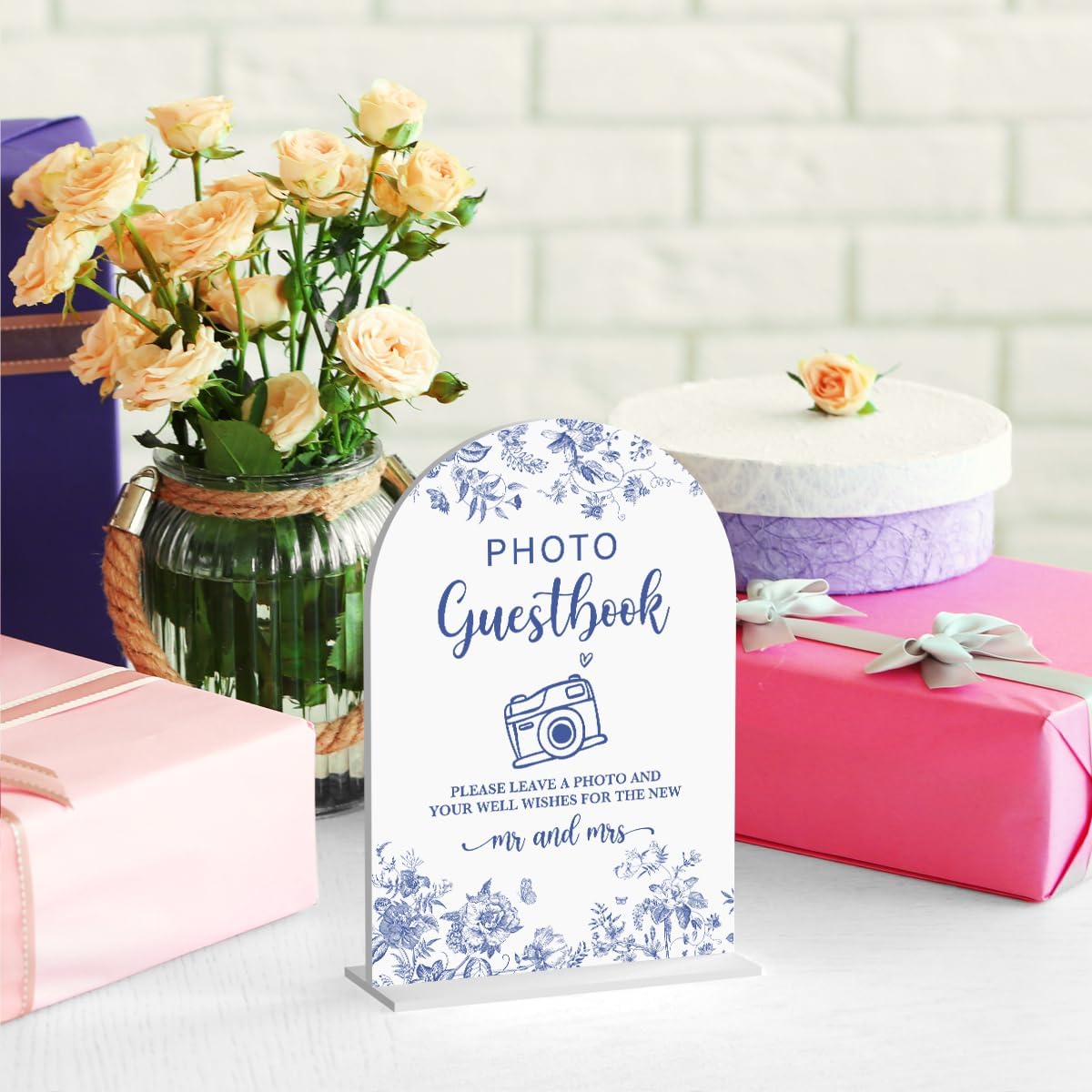 Acrylic Wedding Signs, Dusty Blue Wedding Decor, Blue Weddings Decor, Photo Guestbook Signs for Reception, Modern Calligraphy Arch Acrylic Table Top Sign for Weddings Parties Dinners (White)