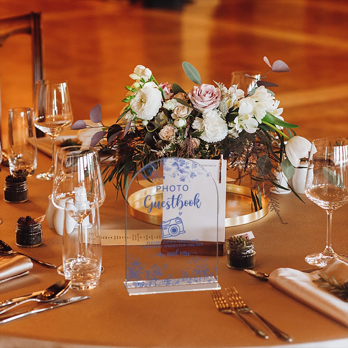 Acrylic Wedding Signs, Dusty Blue Wedding Decor, Blue Weddings Decor, Photo Guestbook Signs for Reception, Modern Calligraphy Arch Acrylic Table Top Sign for Weddings Parties Dinners (Clear)