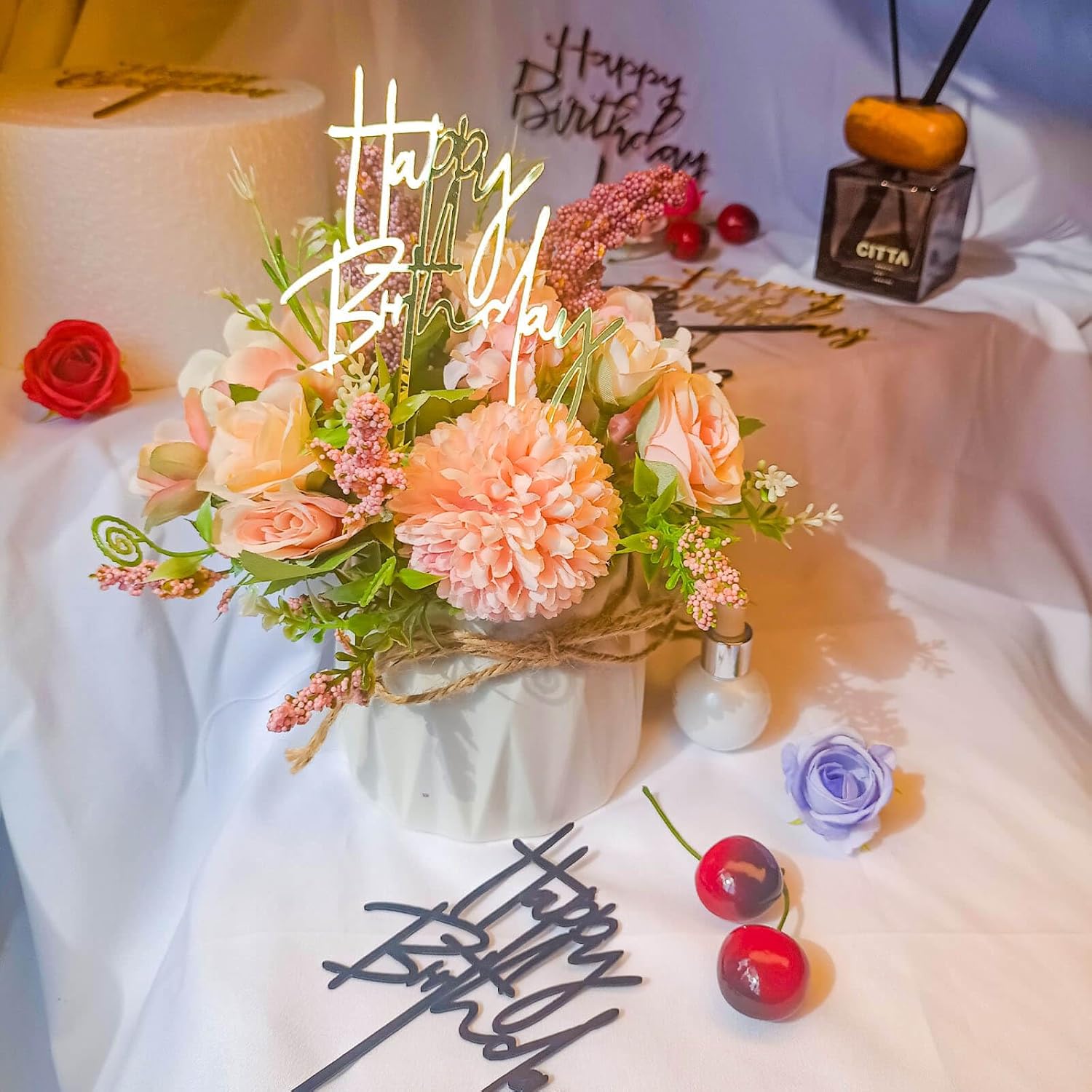- 📏 【Ideal Size for Any Cake】 Measuring 5.3" x 3.9", this happy birthday cake topper fits most cakes, cupcakes, and even dessert tables. Great for parties, weddings, or floral arrangements