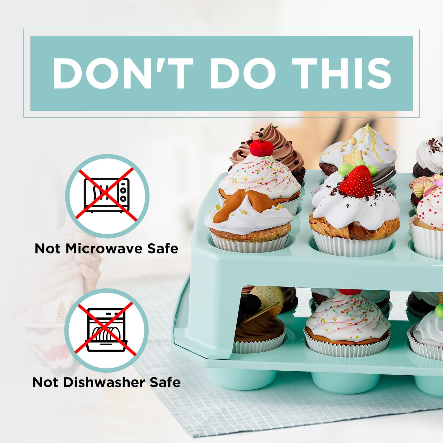 Cupcake Carrier 24 Count, Green Cupcake Holder, Cupcake Container with Lid and Handles, Muffin Traveler Two Tier Stand Reusable Cupcake Box