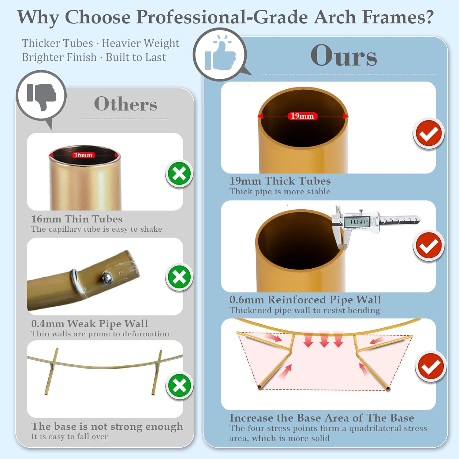 - Premium, Portable & Reusable Investment: Designed for lasting beauty and ease, our rust-proof gold arch backdrop stand heavy duty feature a premium electroplated finish. The included black storage bag ensures simple transport and compact storage, making this balloon arch kit a reusable centerpiece solution for countless celebrations to come.
