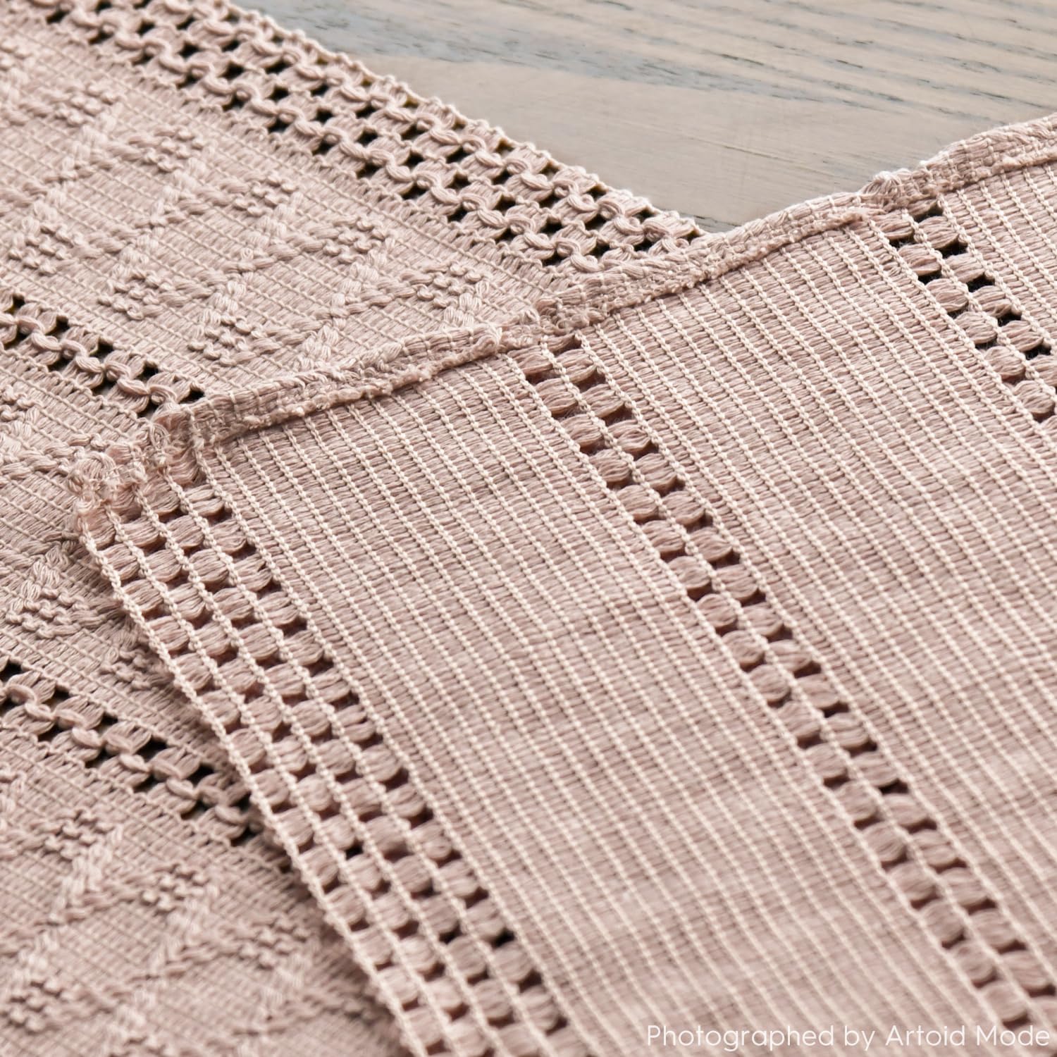 Artoid Mode Pink Farmhouse Woven Rustic Hollow Table Runner, Seasonal Holiday Hollow Kitchen Dining Table Decoration for Home Party Decor 12x90 Inch
