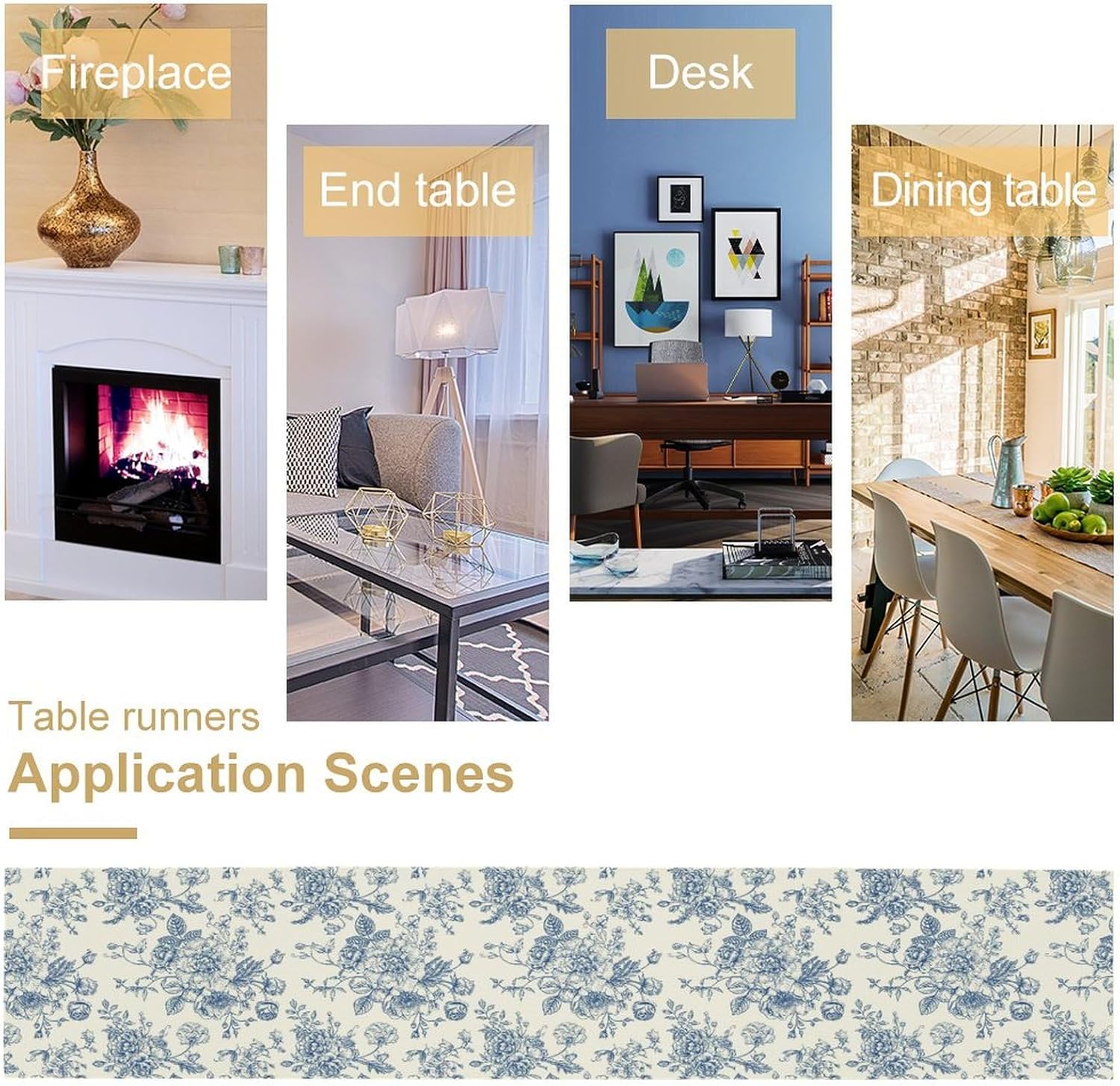 Floral Table Runner, Retro Blue Flower Chinoiserie Sketch Pattern Print Table Runner for Kitchen Dinning Table Runner Decor Home Wedding Party Holiday, 13x36 Inch