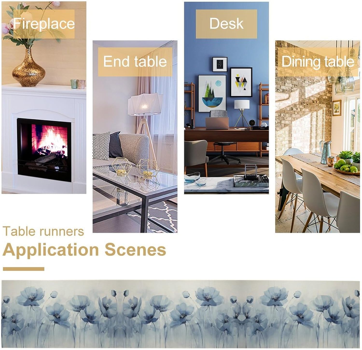 Abstract Floral Table Runner, Blue Poppy Flower Modern Art Print Kitchen Dinning Table Runner for Indoor Outdoor Home Wedding Party Holiday, 13x36 Inch